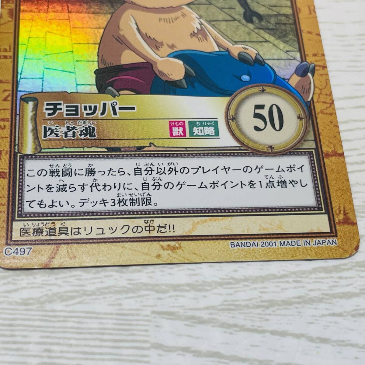 ●初期 旧 ワンピース カード ゲーム ●バンダイ ●2001年 ●チョッパー 医者魂 獣 知略 ●C497 ●スレ・若干の歪み・折れはあります。 ●個人保管品になります。 ●上記ご理解いただける方のみお願いいたします。 |