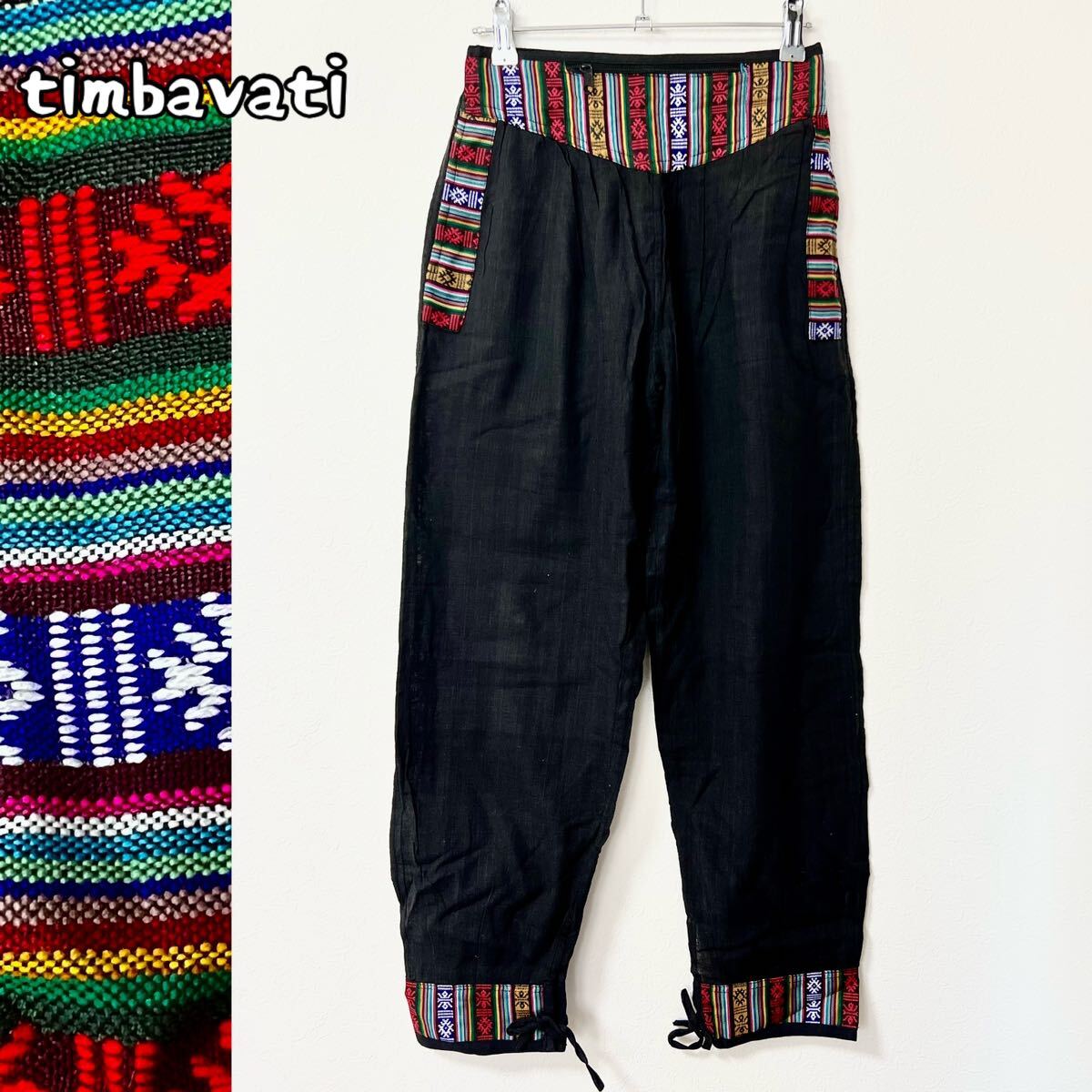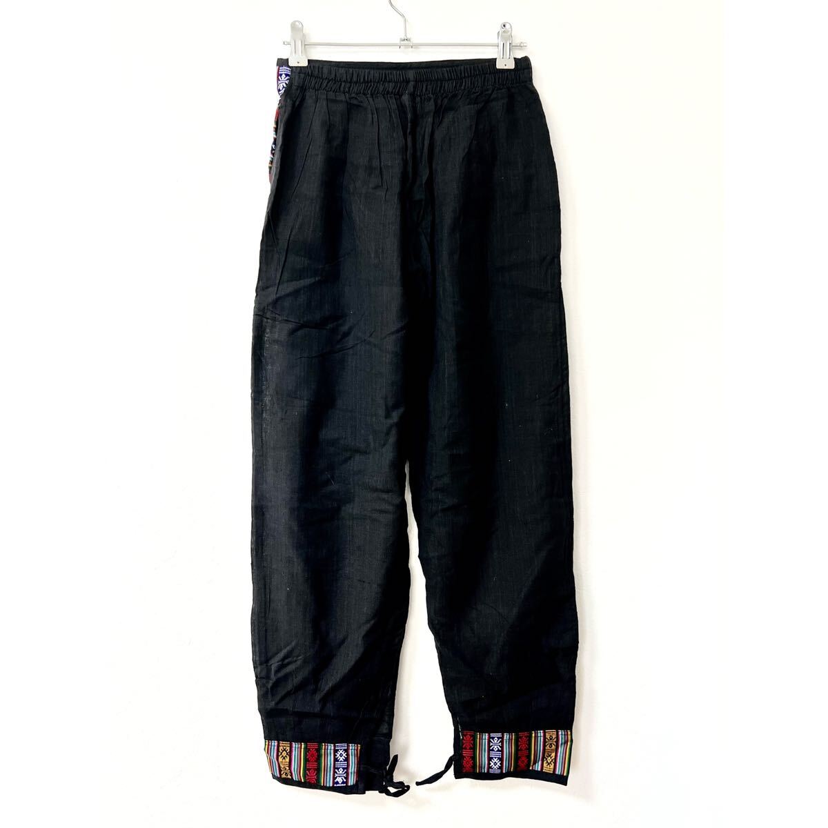 ☆新品☆男女兼用 【ネパール】ゲリ織り ボトムス * XXL * ブラック * ポケット パンツ コットン リネン
