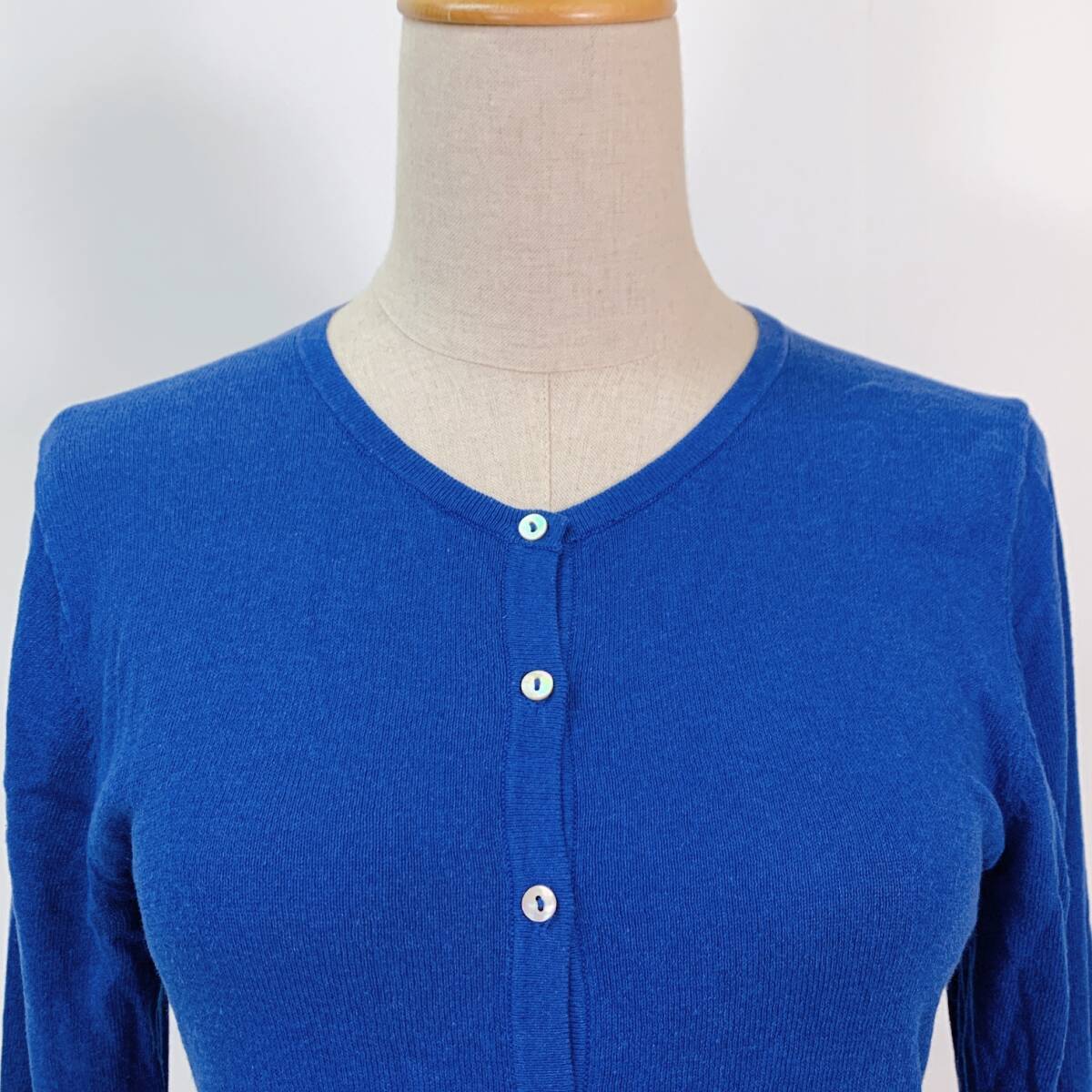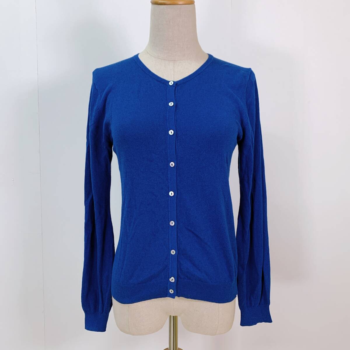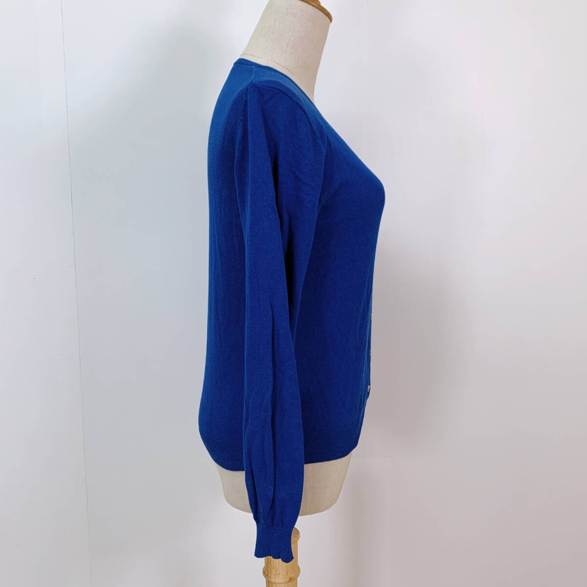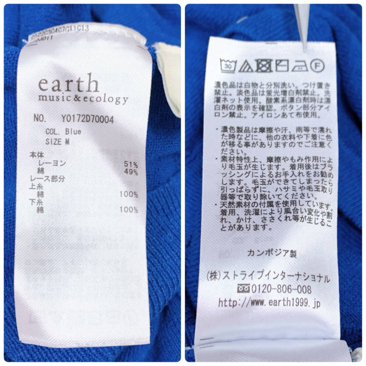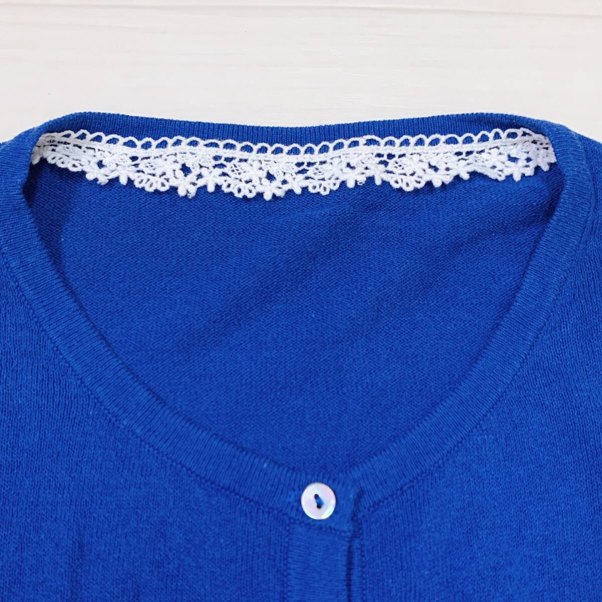 YH1002 earth music & ecology アースミュージックアンドエコロジー レディース 長袖 カーディガン レース M ブルー 青 万能 USED 古着