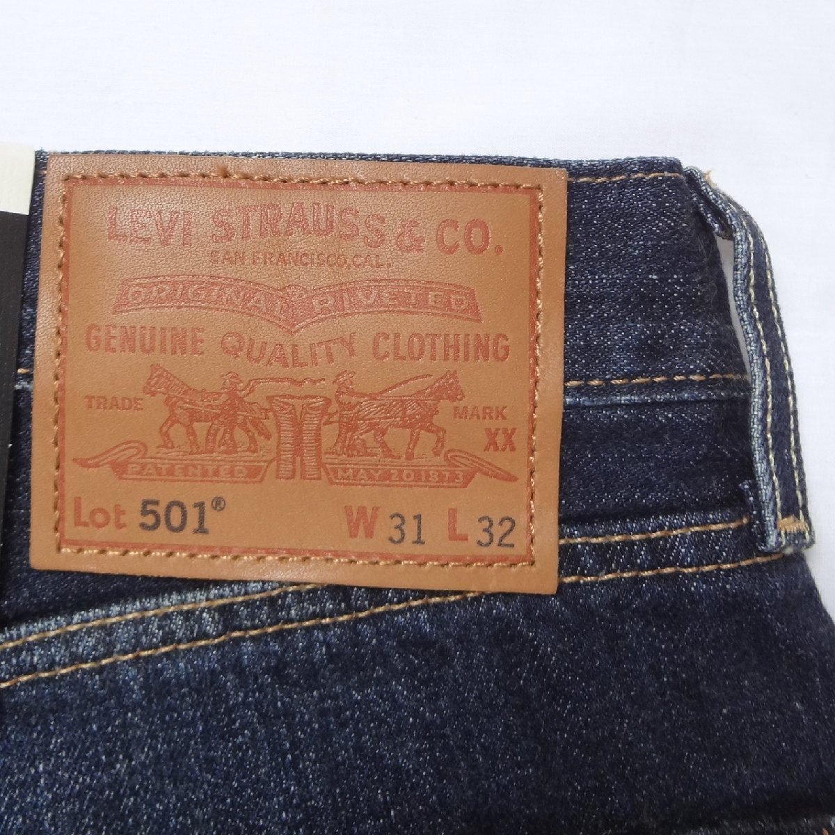 ・ビックEレッドタブ、ボタンフライ、V字ステッチ補強、5ポケットリベット、アーキュエットステッチ