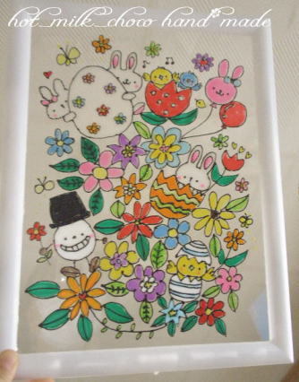 ★NO.A03★ステンドグラス風・A4サイズ・イースター・うさぎ・卵・花・春・4月・エッグ・飾り・ハンドメイド・雑貨・インテリア・イラスト