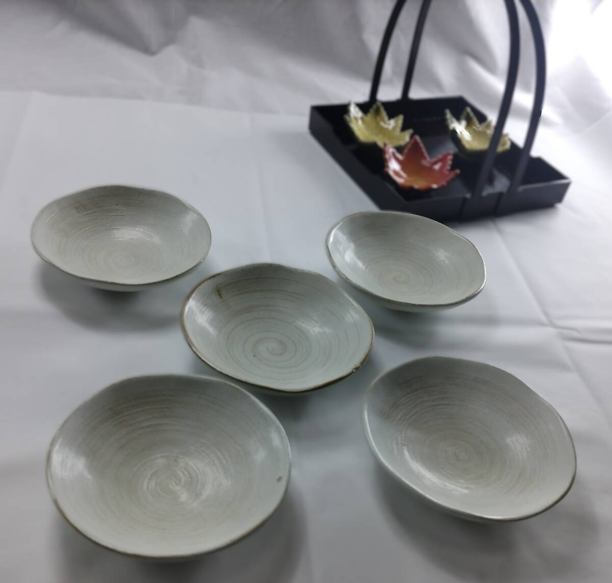 單龜【美品】白い食器 5客揃 はまぐりの貝ようなお皿 小皿 取り皿 銘々皿 皿 かわいい シンプル 和モダン おもてなし 日本 和風 白