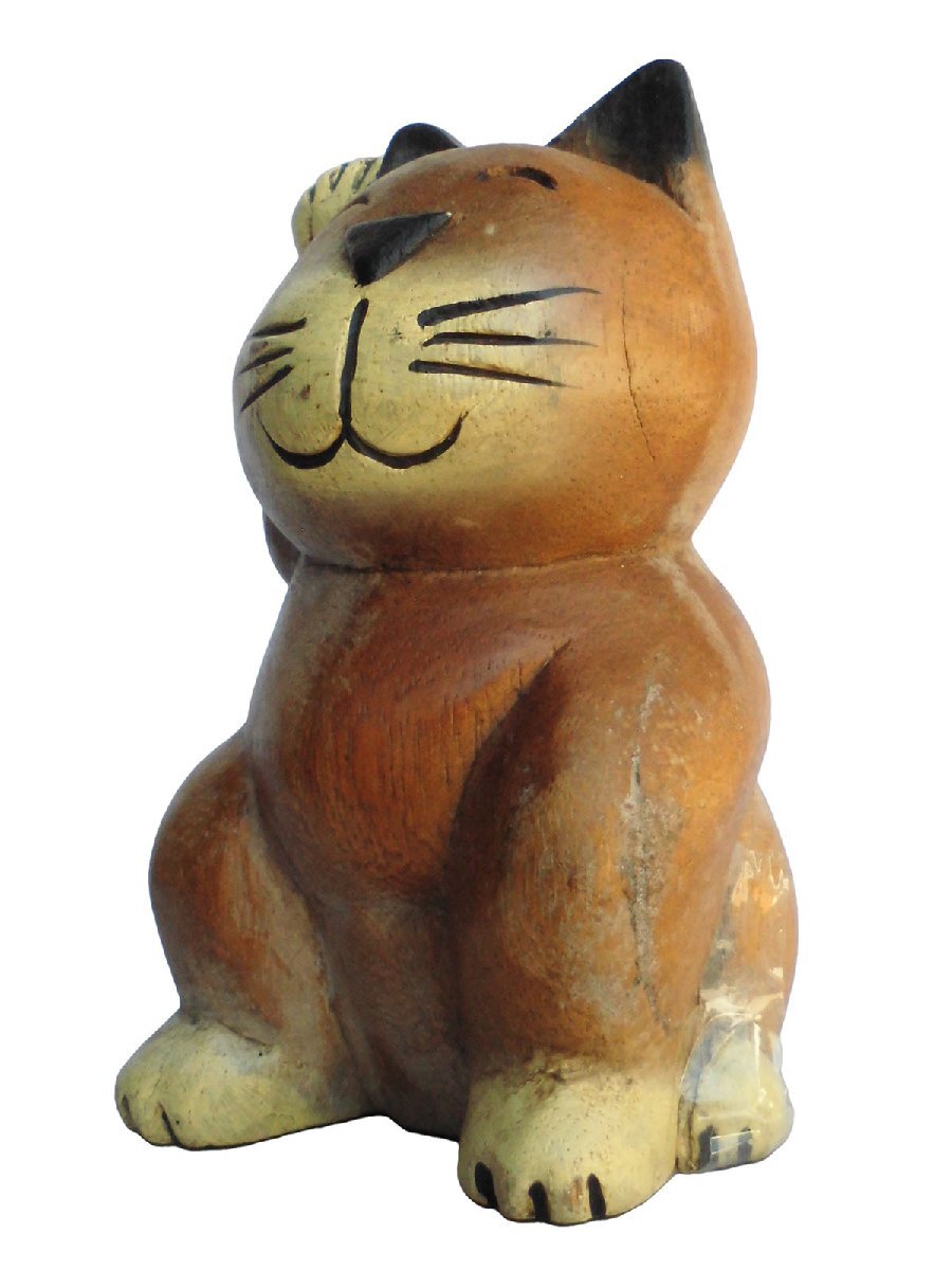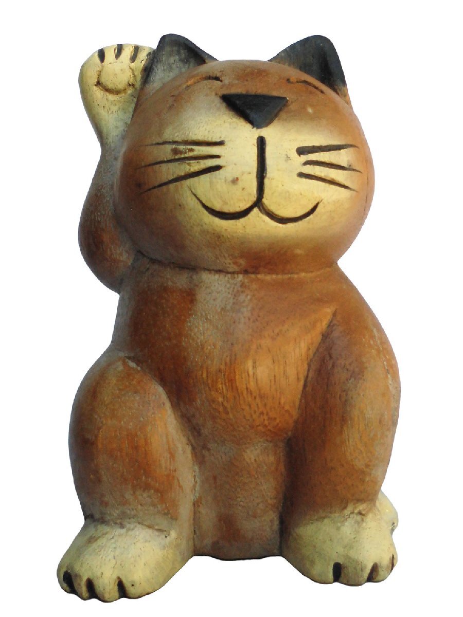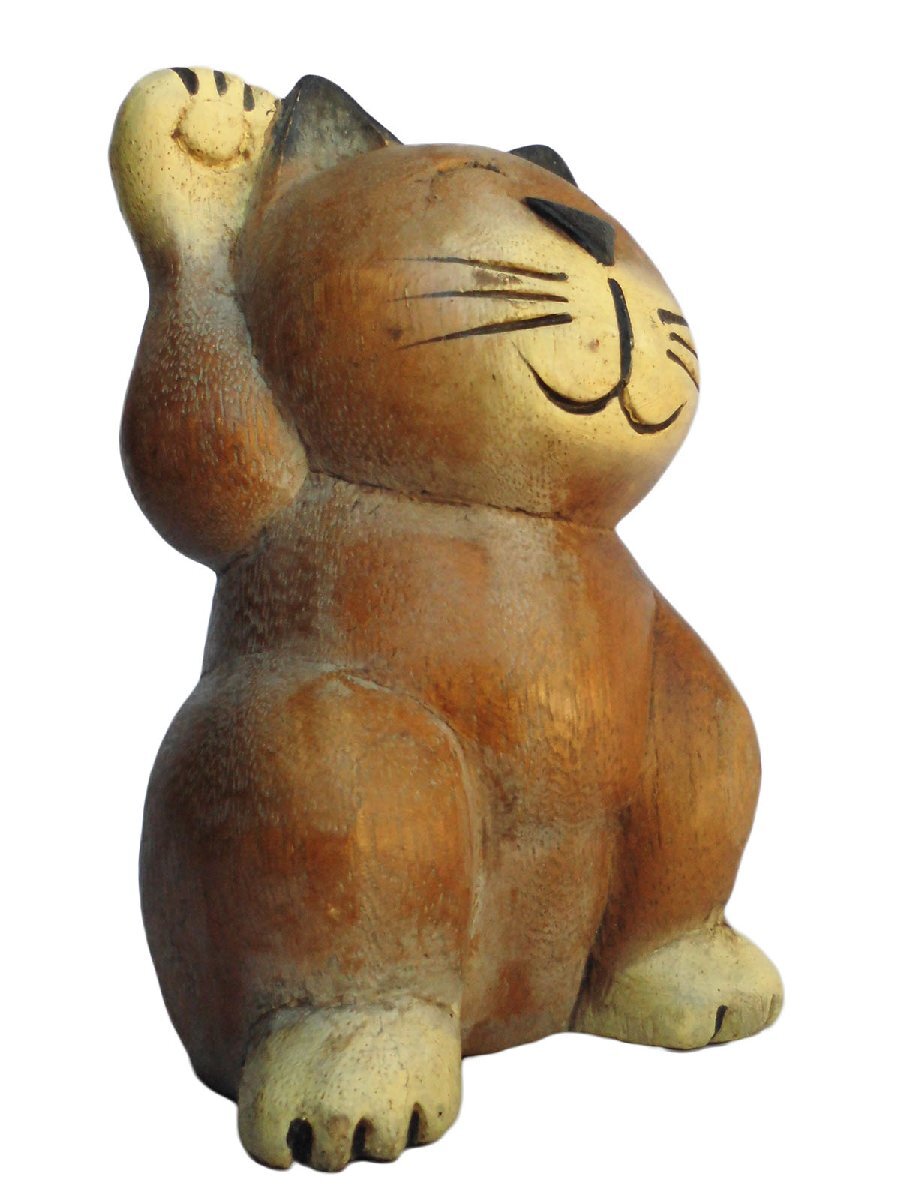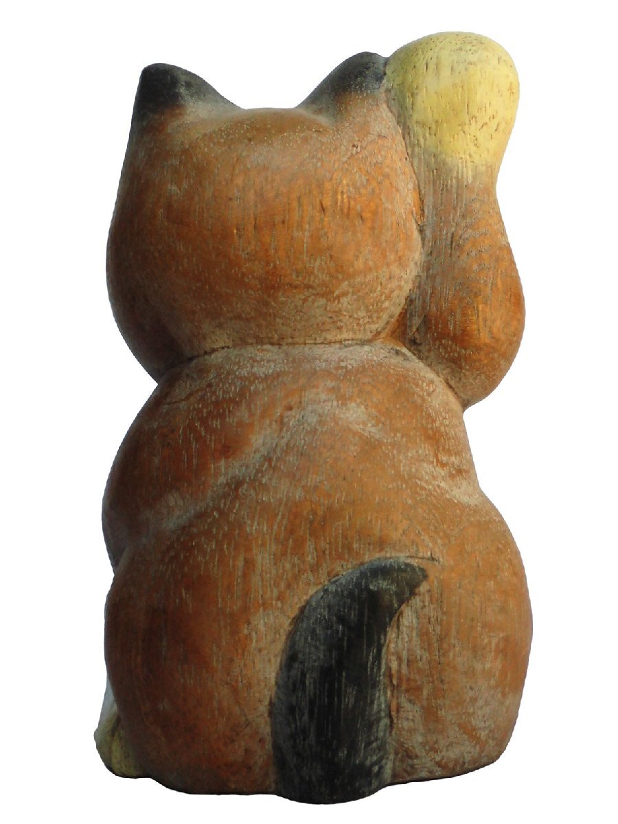 ■☆アジアン雑貨 木彫りネコ(招きねこ)(CAT-45)