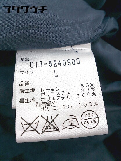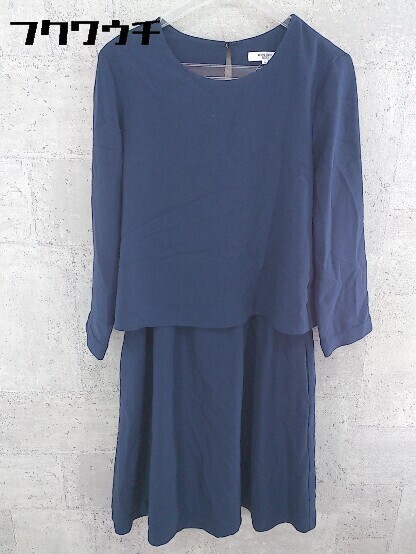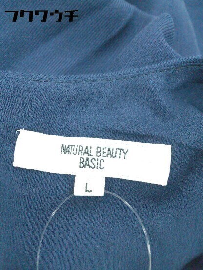 ◇ NATURAL BEAUTY BASIC ウエストゴム 長袖 膝丈 ワンピース サイズL ネイビー レディース