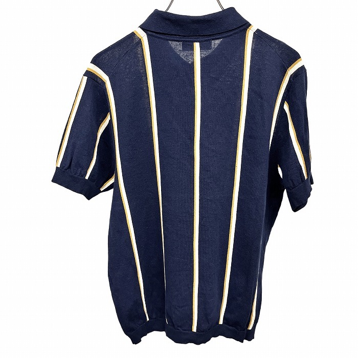 | 商品タイトル | ニジュウサンク オム 23区 HOMME 薄手 ポロニット セーター ストライプ 半袖 和紙×麻×綿 46 ネイビー 紺×マスタード×白系 メンズ |