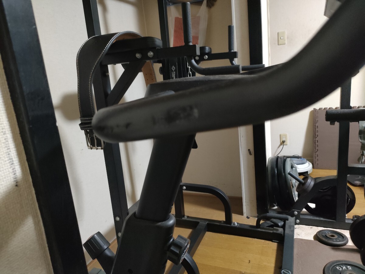 持ち手部分右側が壁の角に当たって画像9のように擦れてしまっています。ペダル左側がギシギシ鳴る場合がありましたが現時点で異音はありません。