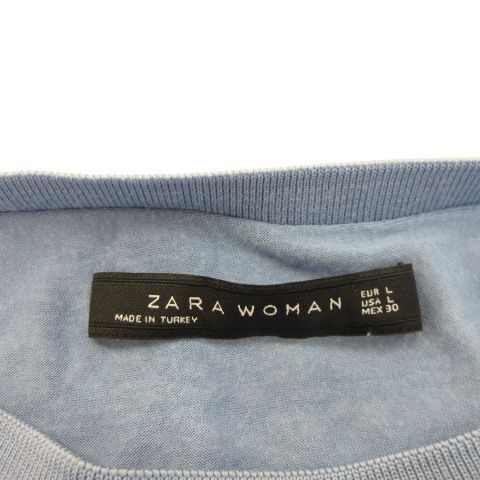 ザラウーマン ZARA WOMAN カットソー シフォン 長袖 青 L *A795 レディース