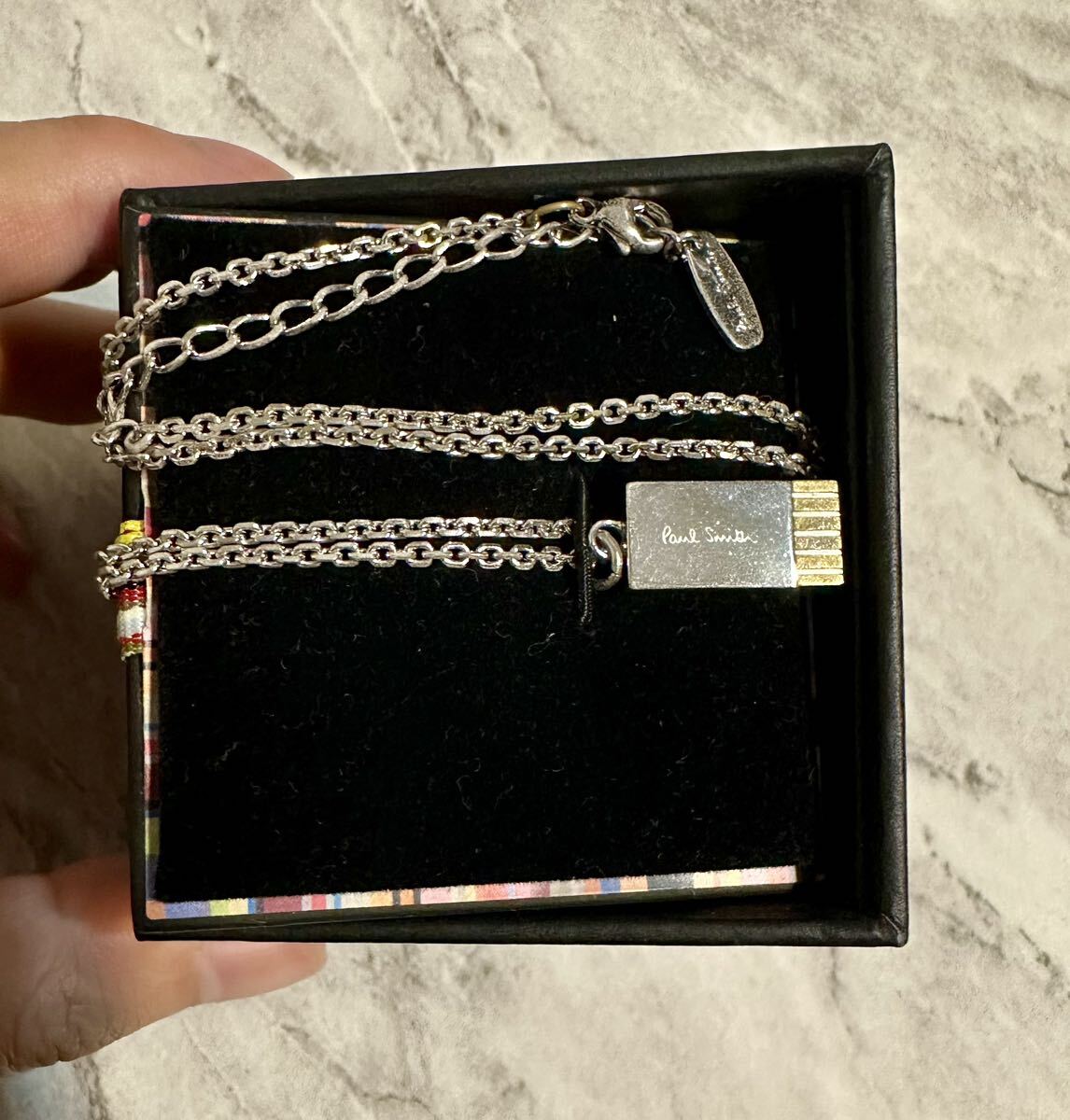 ・ハートの幾何学模様を刻んだプレートにアーティストストライプをあしらったタイバーネックレス。繊細なカッティングを施したエンド部分は回転仕様になっていて、その日の気分やコーディネイトに合わせて2パターンのスタイルが楽しめます。