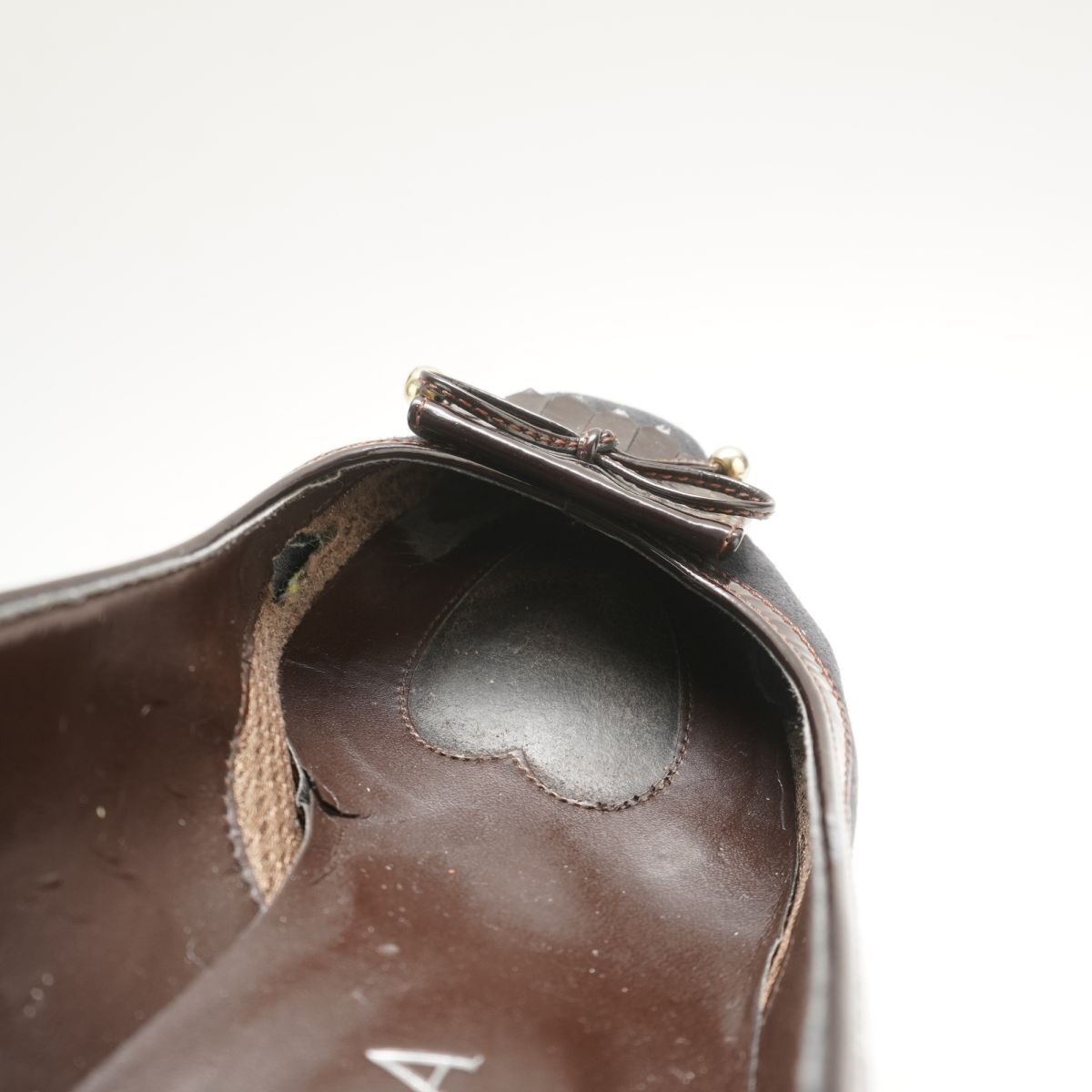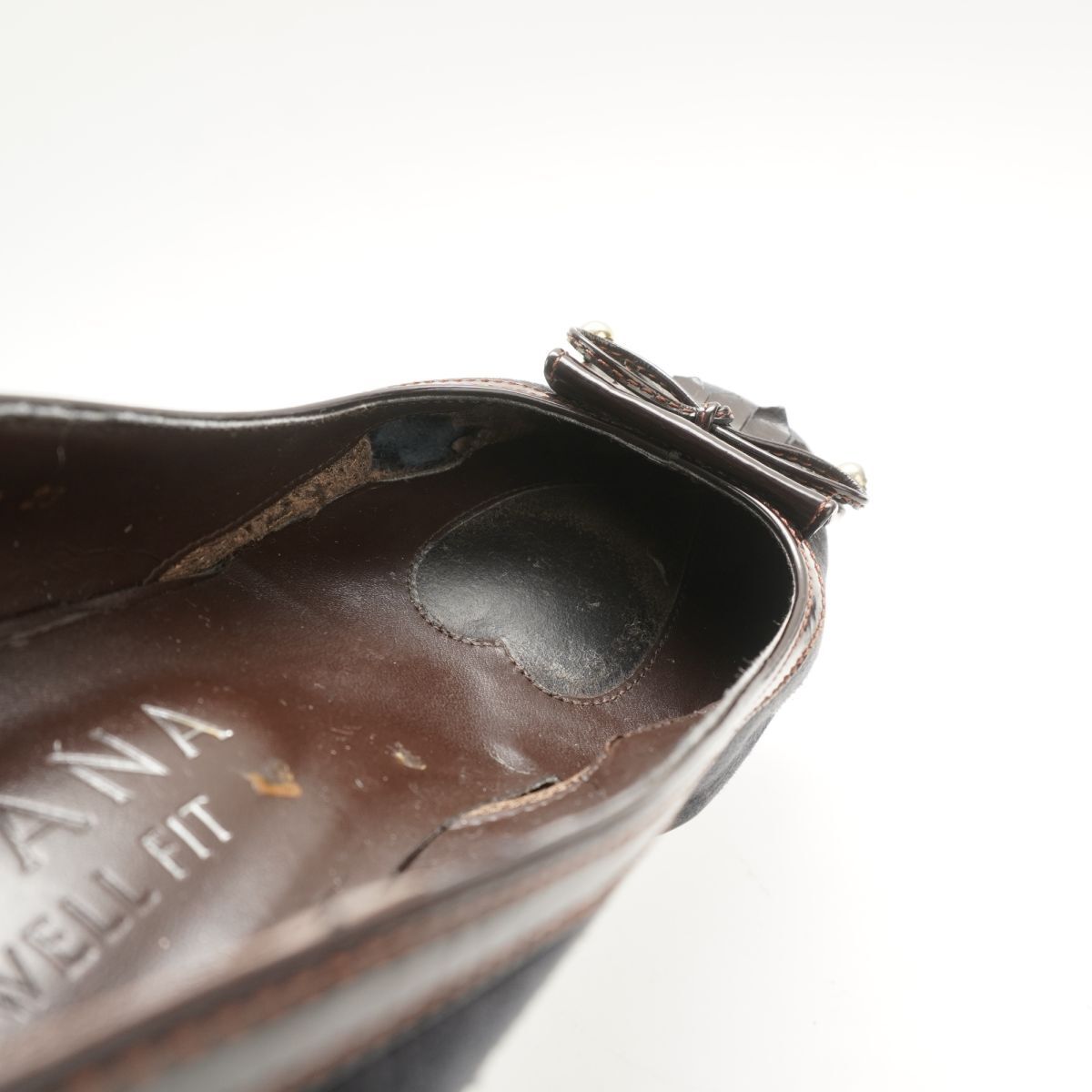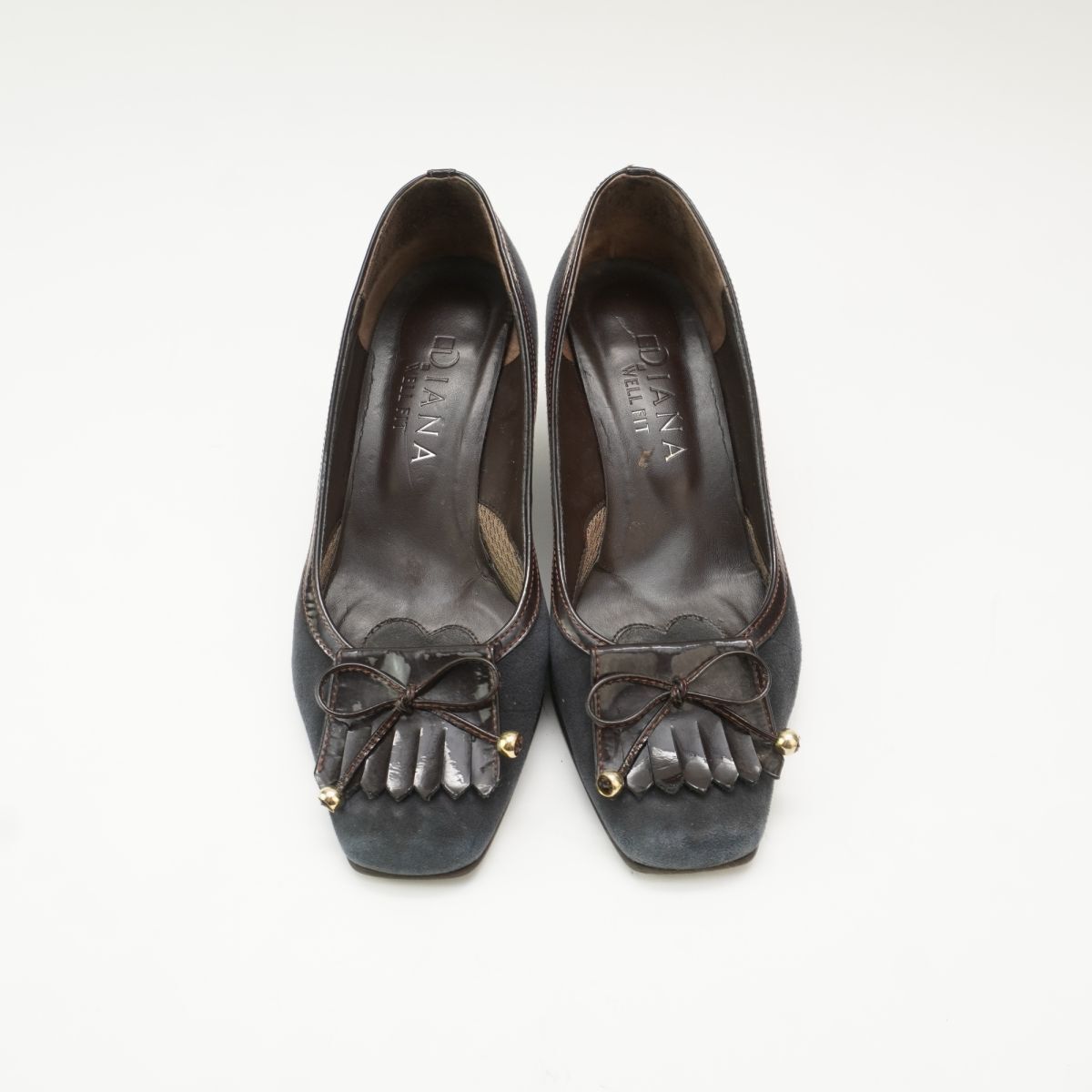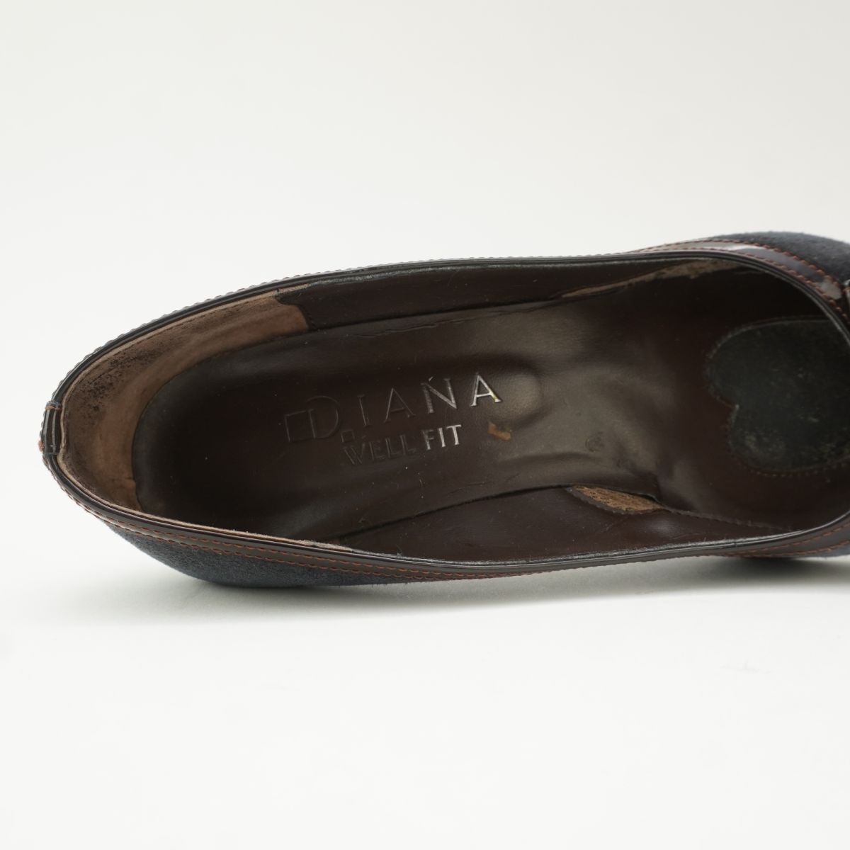 DIANA ダイアナ 23.0 パンプス ヒール ラウンドトゥ リボン スエード エナメル 黒 ブラック/RC112