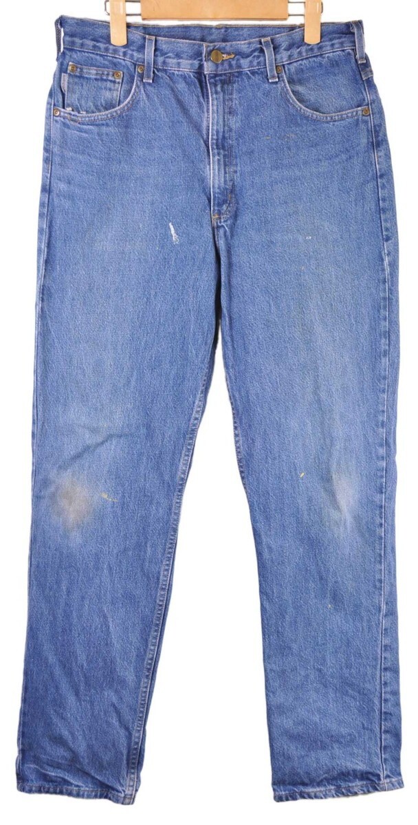 | 商品詳細 | 「Carhartt」デニムパンツ/ワークパンツです!こちらの商品は実際にアメリカの労働現場などで使用されていたアイテムです!デニムブルーベースにシンプルな5ポケットデザインなどがとても良い雰囲気ですので様々な場面で大活躍してくれます!アメリカのリアルワークを体現した1枚ですので本当にお勧めです!なおフロントはジッパーフライとなります。■状態 USEDグレード[B] 1. ボディ:塗料系汚れ数か所・両膝のスレや汚れ・右ポケット2センチ程の糸抜け・左太もも付け根あたりの生地キズ・洗濯等による色あせ/色ムラ/生地スレ/各部フチのスレハゲ・薄い汚れ・細かい汚れ・細かい生地キズなどあり ※全体的に白糸がピンクがかってます。 ※USED商品ですのでそれなりの使用感、細かいダメージがあります。予めご了承ください。 状態について 個体差はありますが、記載していない小穴や小ダメージ、裾やポケット縁などのスリキレ・薄い汚れ、細かい汚れ、その他などある場合があります。 またもともとUSED加工(ダメージ加工やウォッシュド加工など)が施されている場合もあり、実際の使用感との境界線はあいまいですのでご了承下さい。 上記を含め「それなりの使用感」としておりますので予めご了承下さい。 ■サイズ[単位:約/cm] 表記・・・36×34 胴囲・・・89 全長・・・116.5 股下・・・84.5 モモ幅・・・33 裾幅・・・21 ※サイズは小さめで実寸計測おおよそW35相当となります。 ※裾上げされている場合がありますので実寸を基準にご参考下さい。 ※ブランドや年代によってもサイズ感が異なりますので実寸を必ずご参考下さい。 ■商品詳細 ブランド・・・Carhartt 商品名・・・デニムパンツ/ワークパンツ 生産国・・・メキシコ 製造年・・・- - - - 色&柄・・・デニムブルー 素材・・・綿:100% カラーについて 撮影やご覧のモニターなどによって商品写真の色味が変わることがあります。 色味についてのイメージ違いなどの理由によっての返品はお受け出来ませんので 気になる点などございましたらご購入前に必ずお問い合わせください。 - |