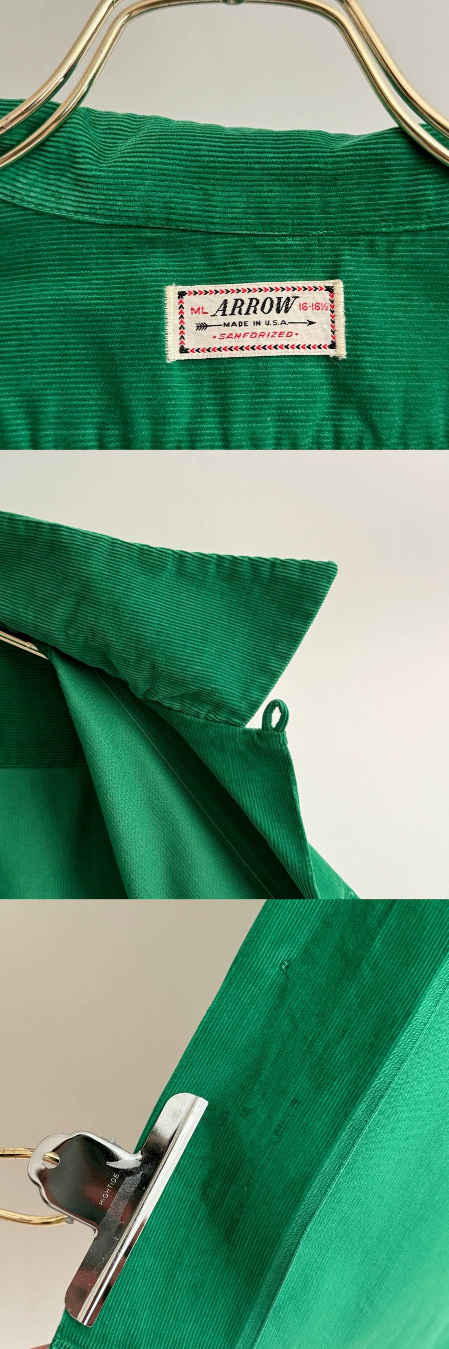希少《 Mint Condition(1Wash) / Corduroy 》50s 60s 超極上品【 ARROW グリーン コーデュロイ ボックスシャツ ML 16.5 ビンテージ 】