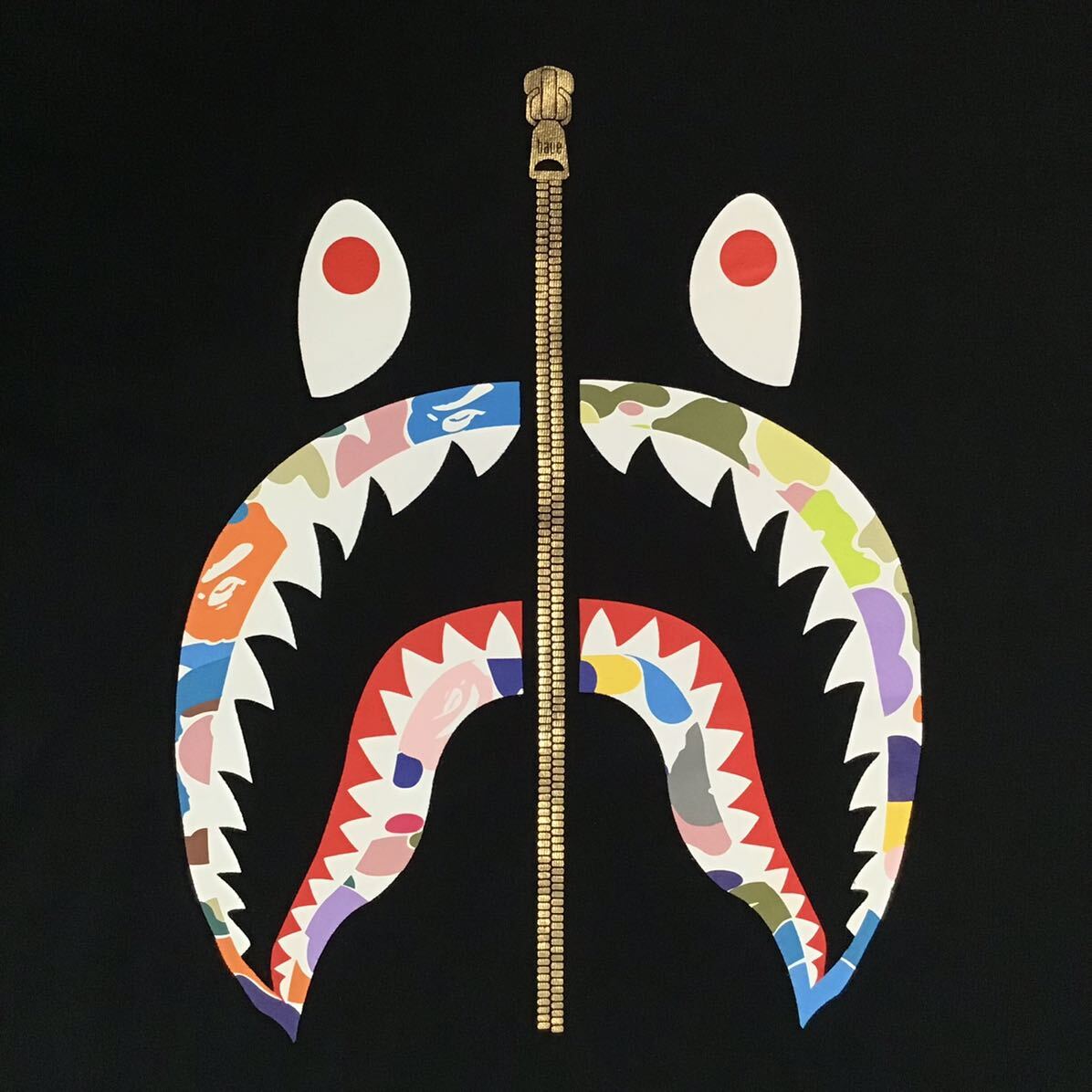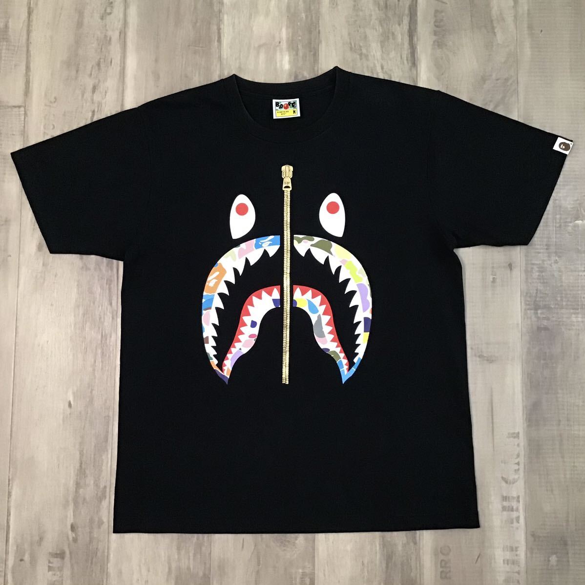 a bathing ape シャーク Tシャツ マルチカモ × ブラック Mサイズ です★