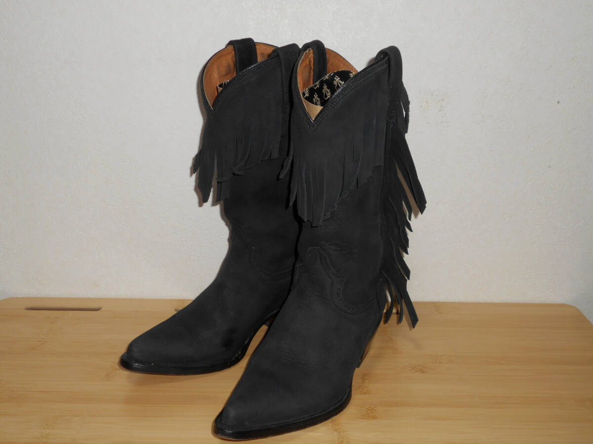 メキシコ製★Rancho BOOTS ランチョ レザーウエスタンブーツ 黒 サイズ6です。素材は本革 ヌバックレザーです。色は黒系です。色は画像でご判断ください。
