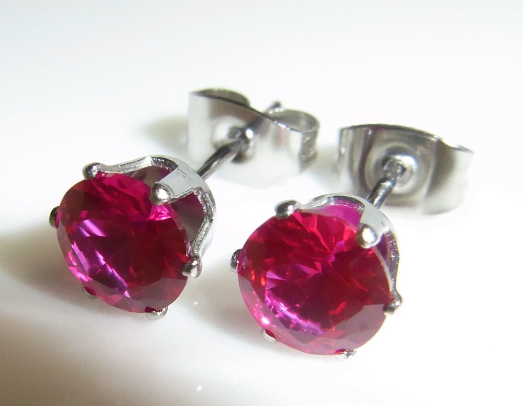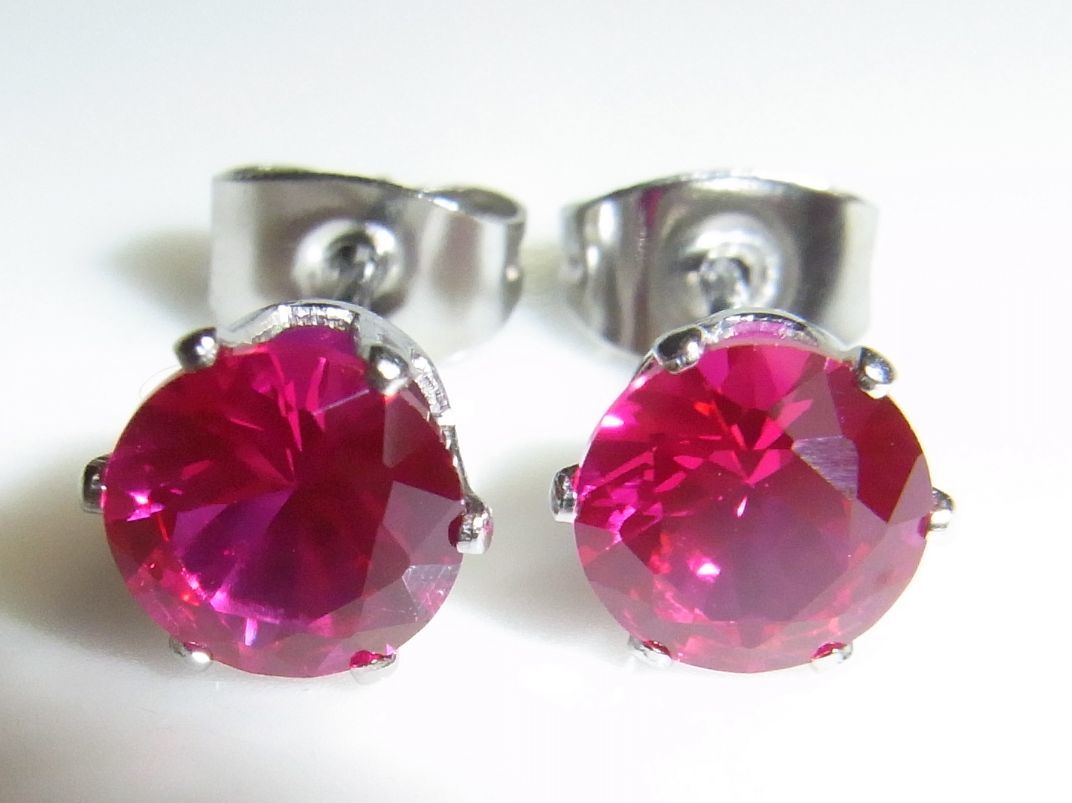 ★2ct 大粒6ミリ ルビー ピアス 天然同成分 316ステンレス製 ★合成ルビー★宝石★ | |||