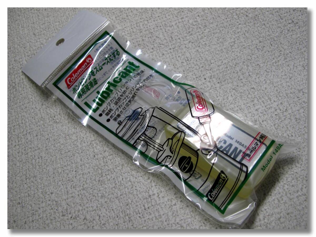 コールマン燃焼器具類のメンテナンスに必要な「リュブリカントオイル<149A5361>」です。初期オールドモデル以外はほぼ全てのコールマン燃焼器具のポンプ部キャップに穴が開いています。初心者の方ならば何の穴かご存知で無いと思いますが、このリュブリカントオイルの注入穴となっています。このオイルは常日頃、小まめに注入しておく事が肝心です。