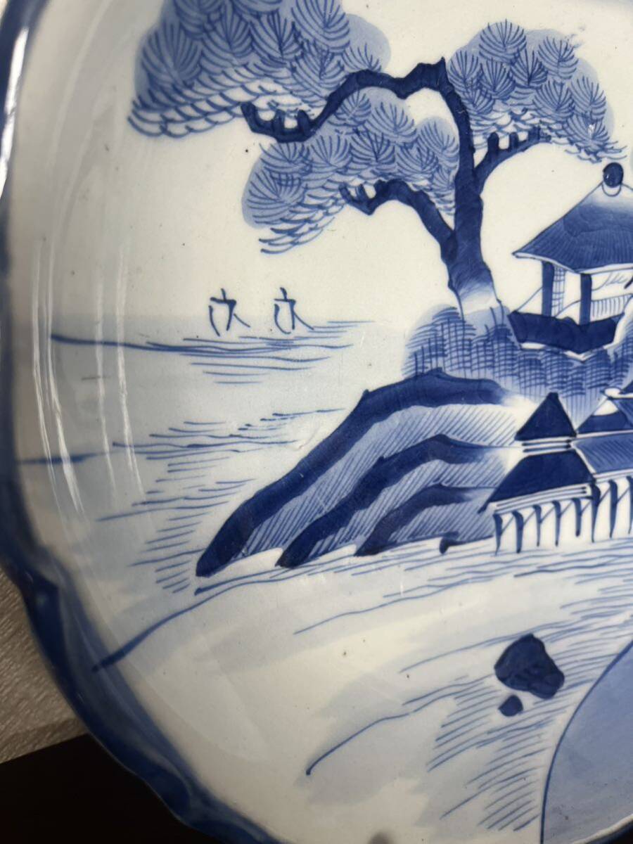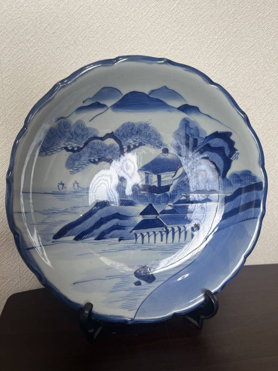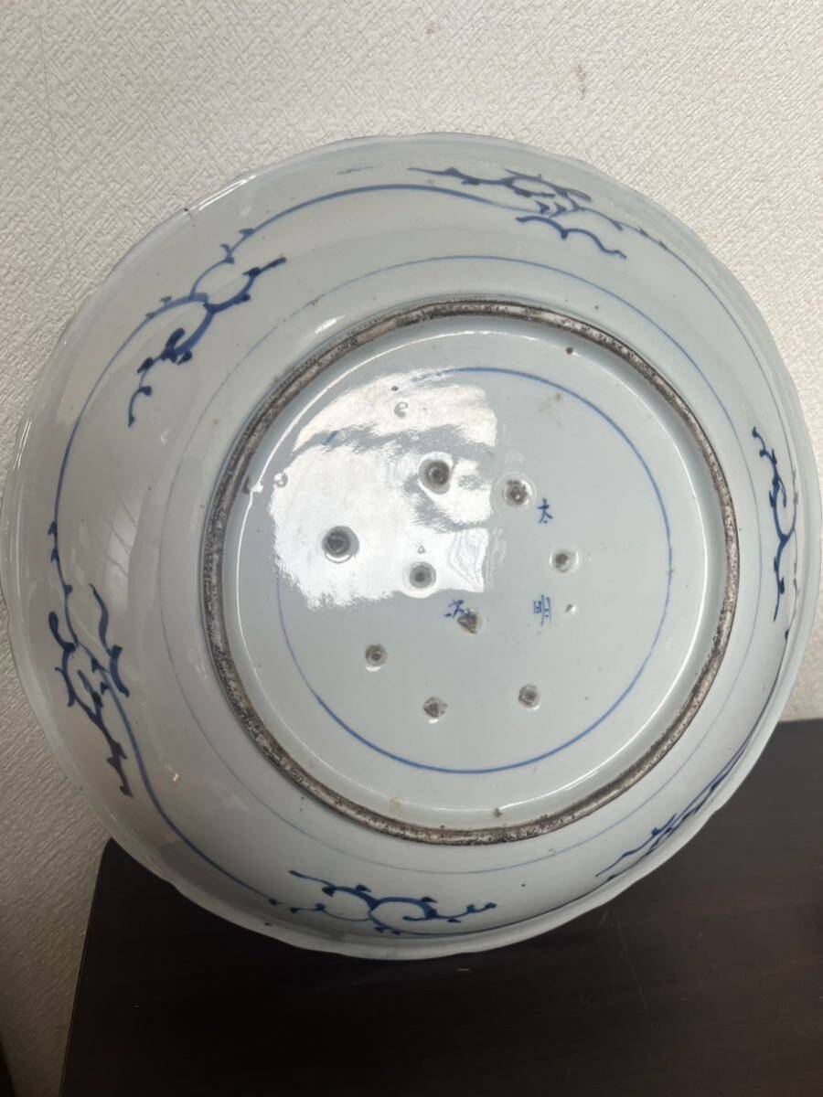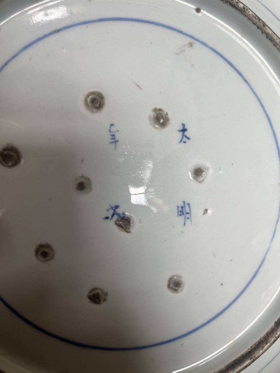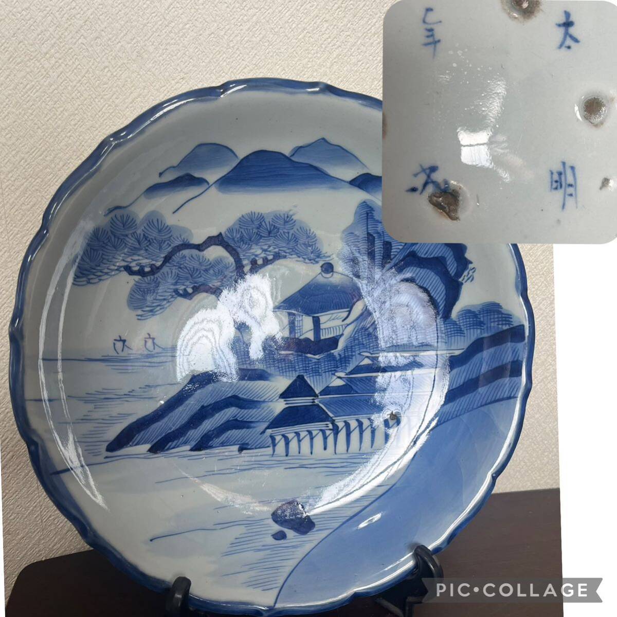 古伊万里 太明年成 直径32cm 染付 骨董 大皿 茶道具 古玩 古美術