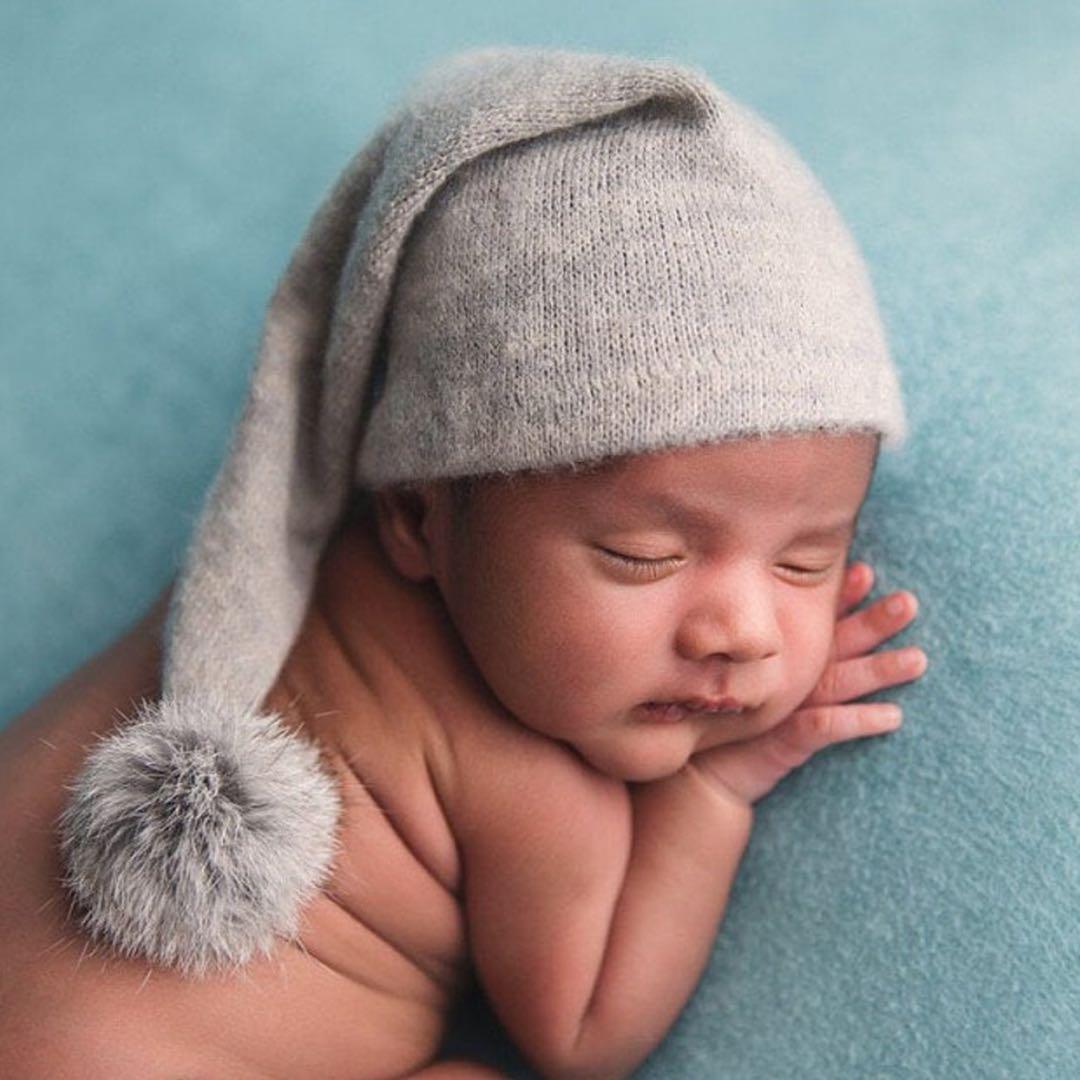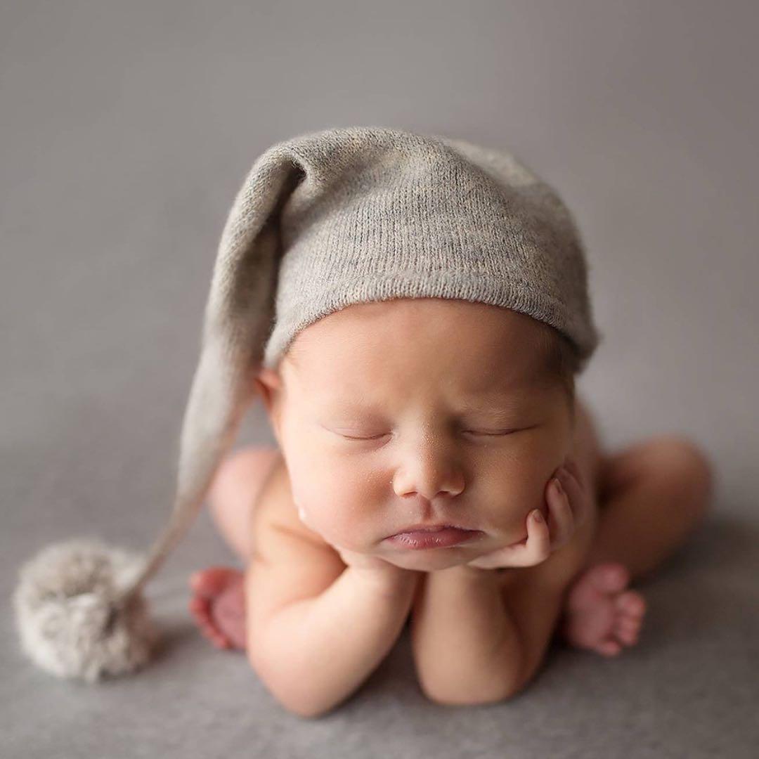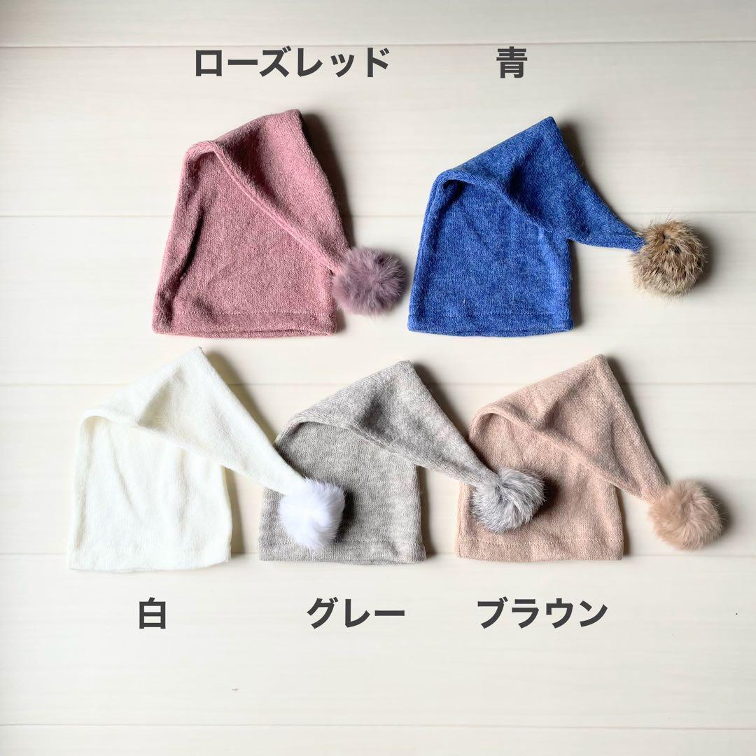ニューボーンフォトにピッタリな、ぽんぽん付きの三角のとんがり帽子になります