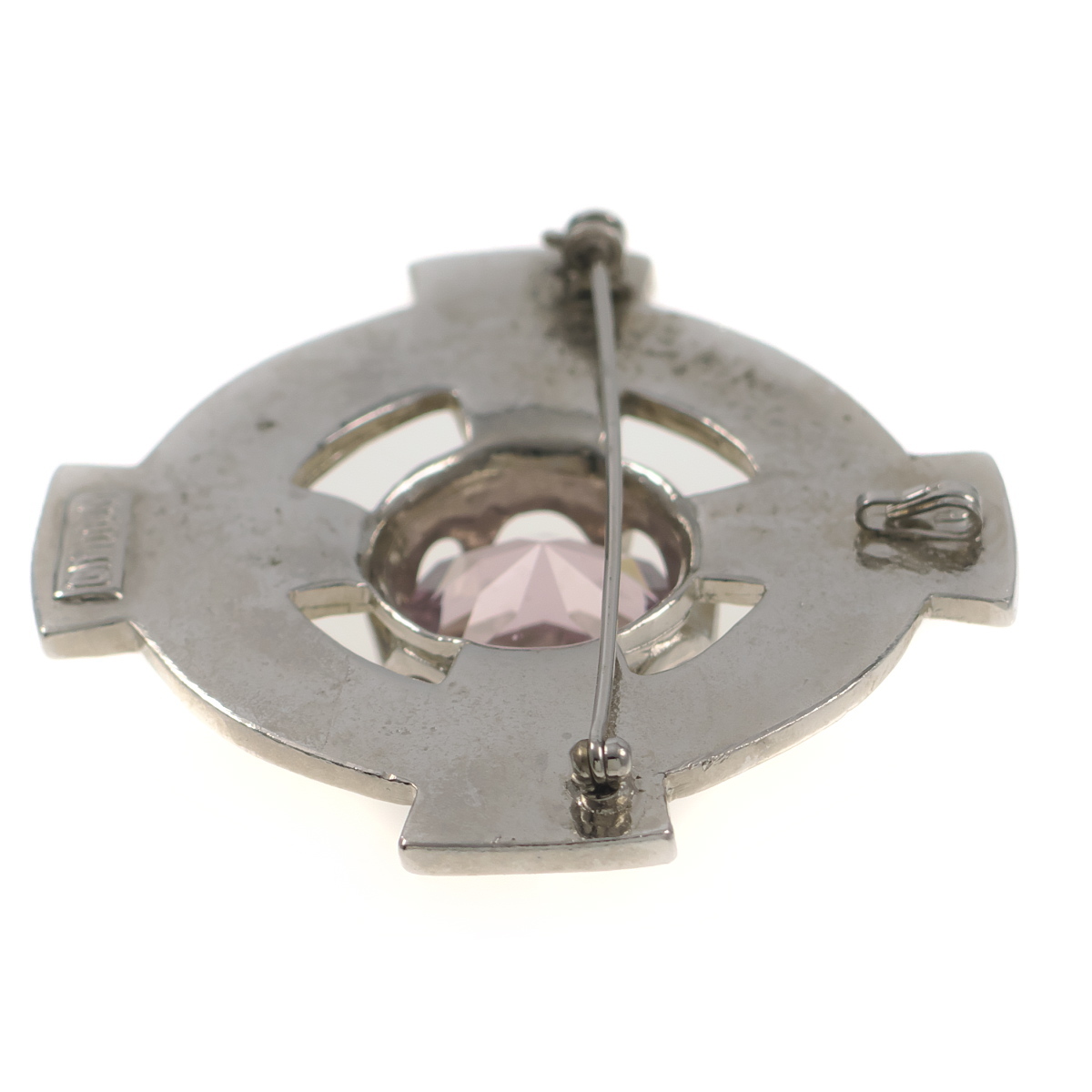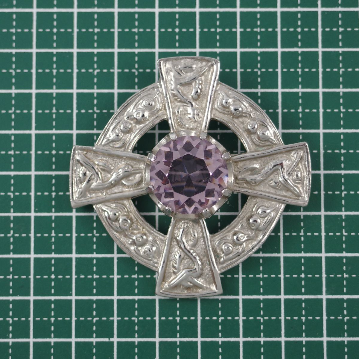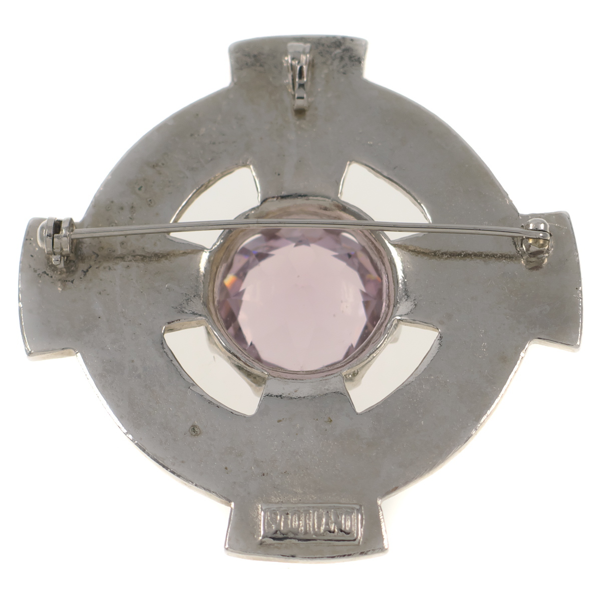 UK1392◆【SCOTLAND】◆ 大ぶり ケルト十字 クロス 動物の模様 ピンク系ストーン ペンダントトップ兼用 英国 ◆ ヴィンテージブローチ ◆