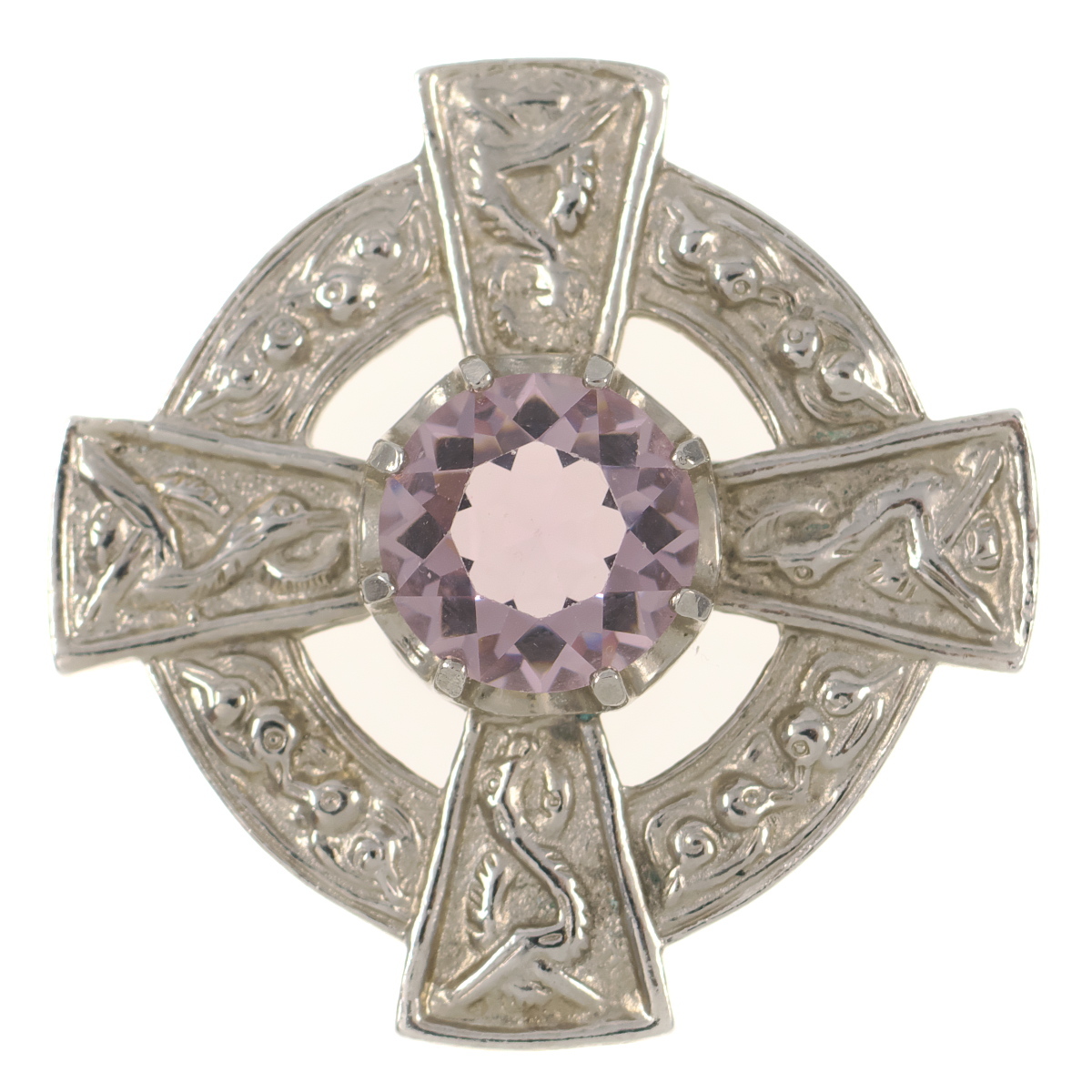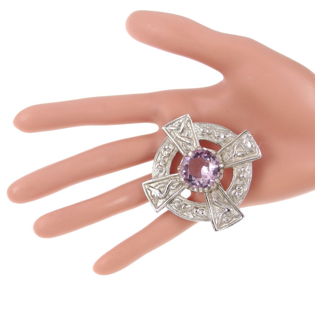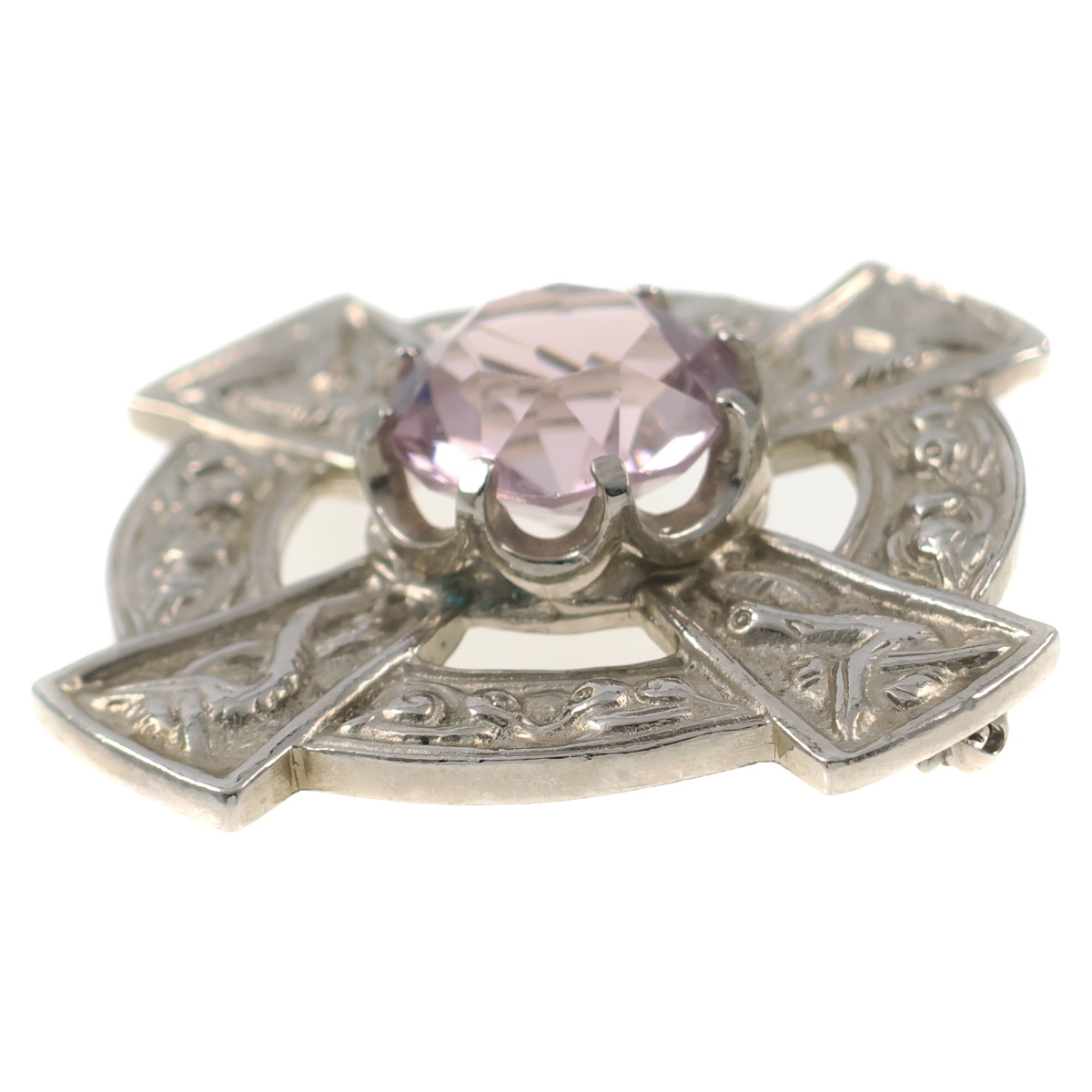 UK1392◆【SCOTLAND】◆ 大ぶり ケルト十字 クロス 動物の模様 ピンク系ストーン ペンダントトップ兼用 英国 ◆ ヴィンテージブローチ ◆