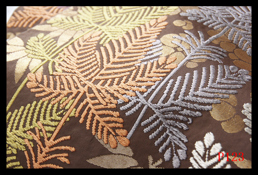 綾織地の上に、さらに多彩な色糸を使い、柄を刺繍のように立体的縫い取りで織り出す技法でした豪華絢爛な織物のことで。錦地の中で最も高級とされる織物です