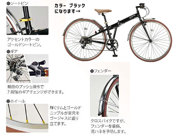 キャプテンスタッグ ブラッシュアップ FDB7007BAA ブラック 7段変速 自転車 サイクル 折りたたみ 黒 YG-212 メーカー直送 法人のみ配送