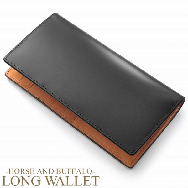 【日本一優勝記念SALE】【送料込み】【数量限定】【新品】【長財布】馬革ホースハイド加工■バッファローレザー■ロングウォレット BK
