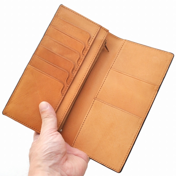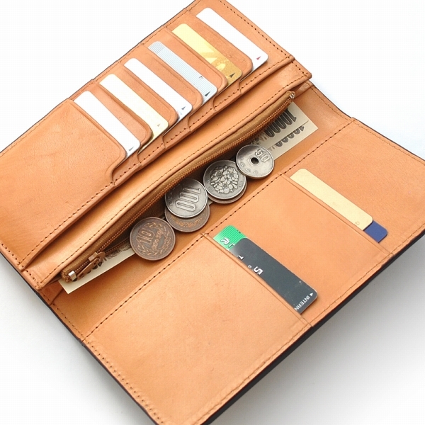 その一方、硬質で丈夫なバッファローレザーを内面に使用することで、高級感を維持させつつ永くお使い頂ける経年変化も楽しめる財布に仕上がっています。