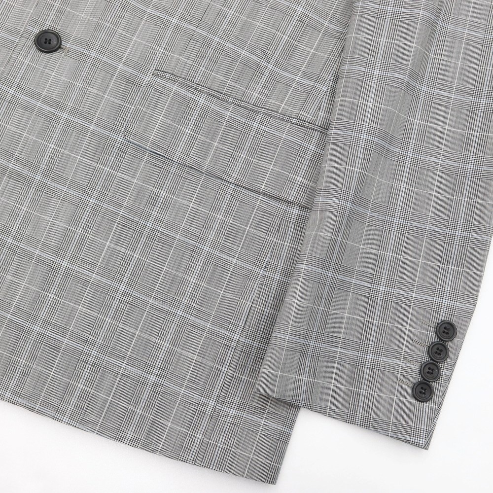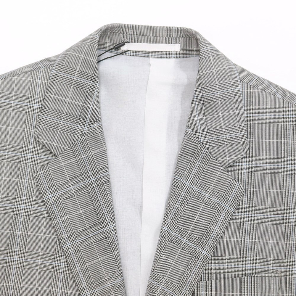 さらっとしたタッチのストレッチウールポリエステル素材を用いたジャケットです。軽やかな質感の表地に、透け感のあるエアリーな裏地を配した清涼感のある一着です。上品なグレンチェックに、さりげないブルーのペーンを配したデザインになります。