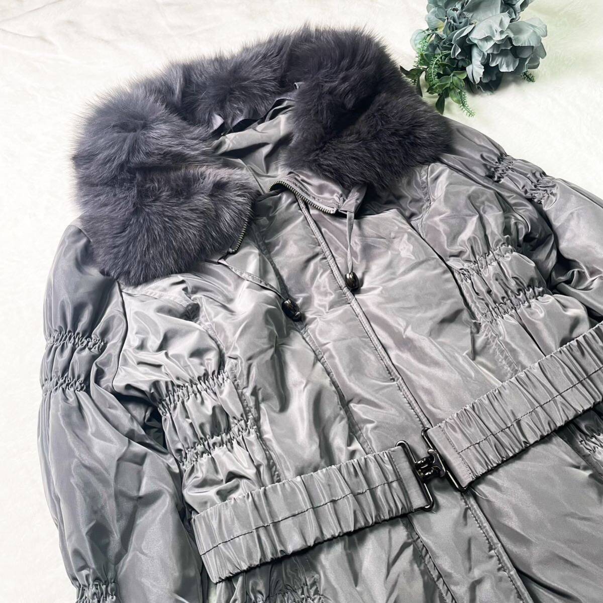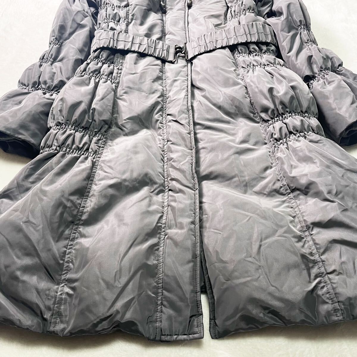 ダウンコート ベルト スタンドカラー リアルファー 毛皮 Aライン ファー着脱可能 大きいサイズ XXL