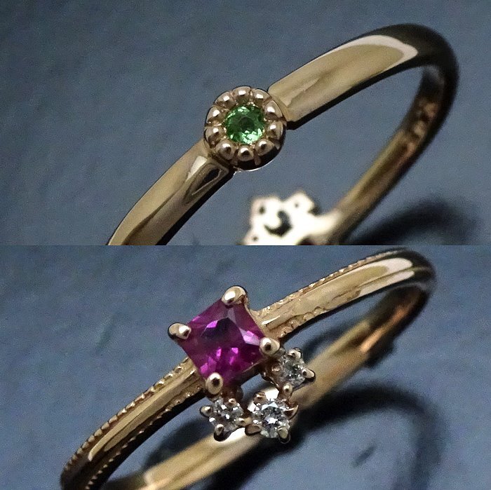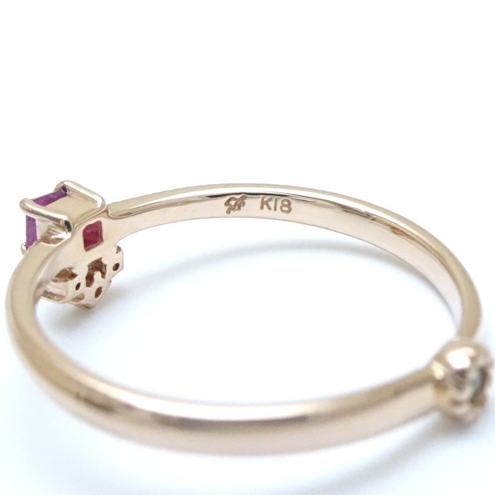 Sirena Azzurro セイレーン アズーロ リング ルビー グリーンガーネット ダイヤモンド0.02ct 11号 K18PG ピンクゴールド/292263【中古】