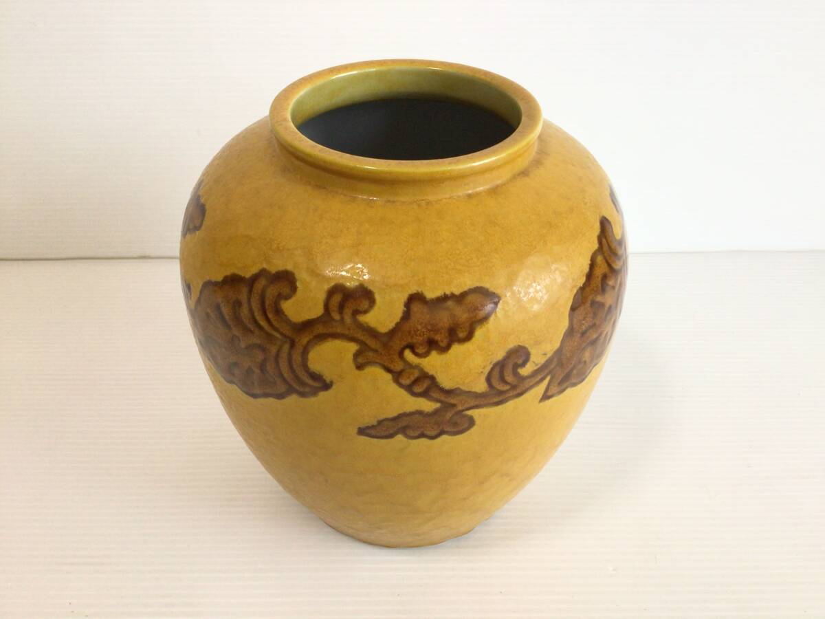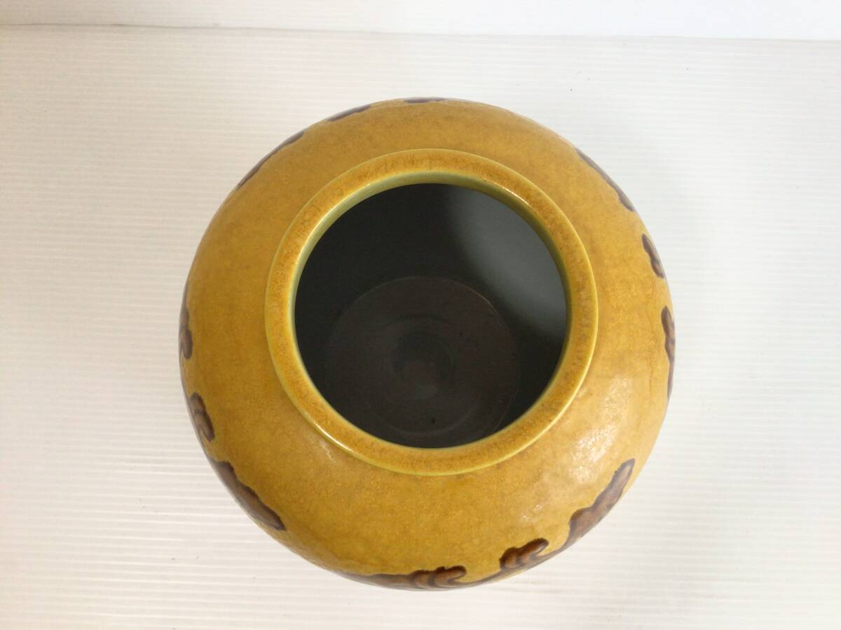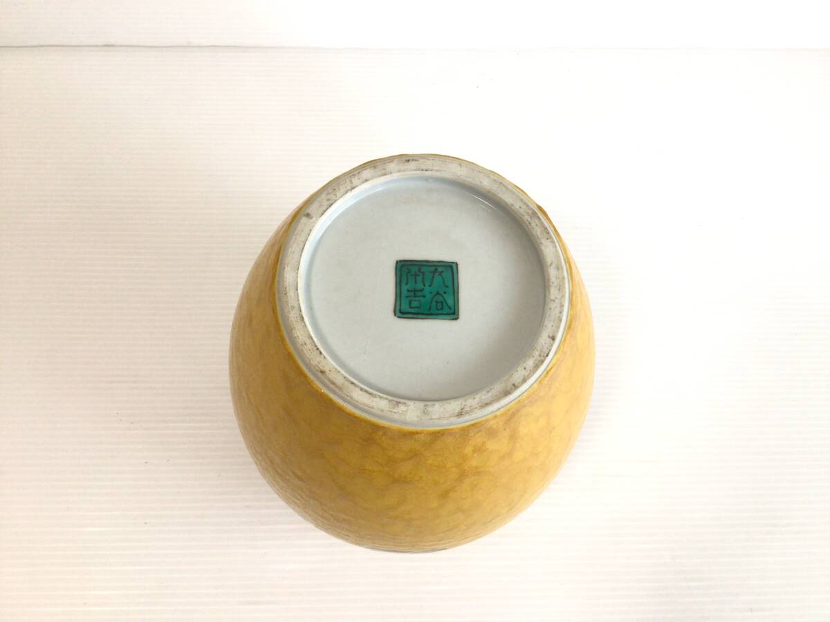 X235 送料無料 九谷焼 九谷八十吉 人間国宝 徳田八十吉 花瓶 壺 花器 フラワーベース 飾り壺 交路 黄交路 1点 コレクション 現状品