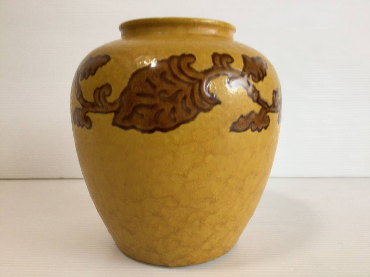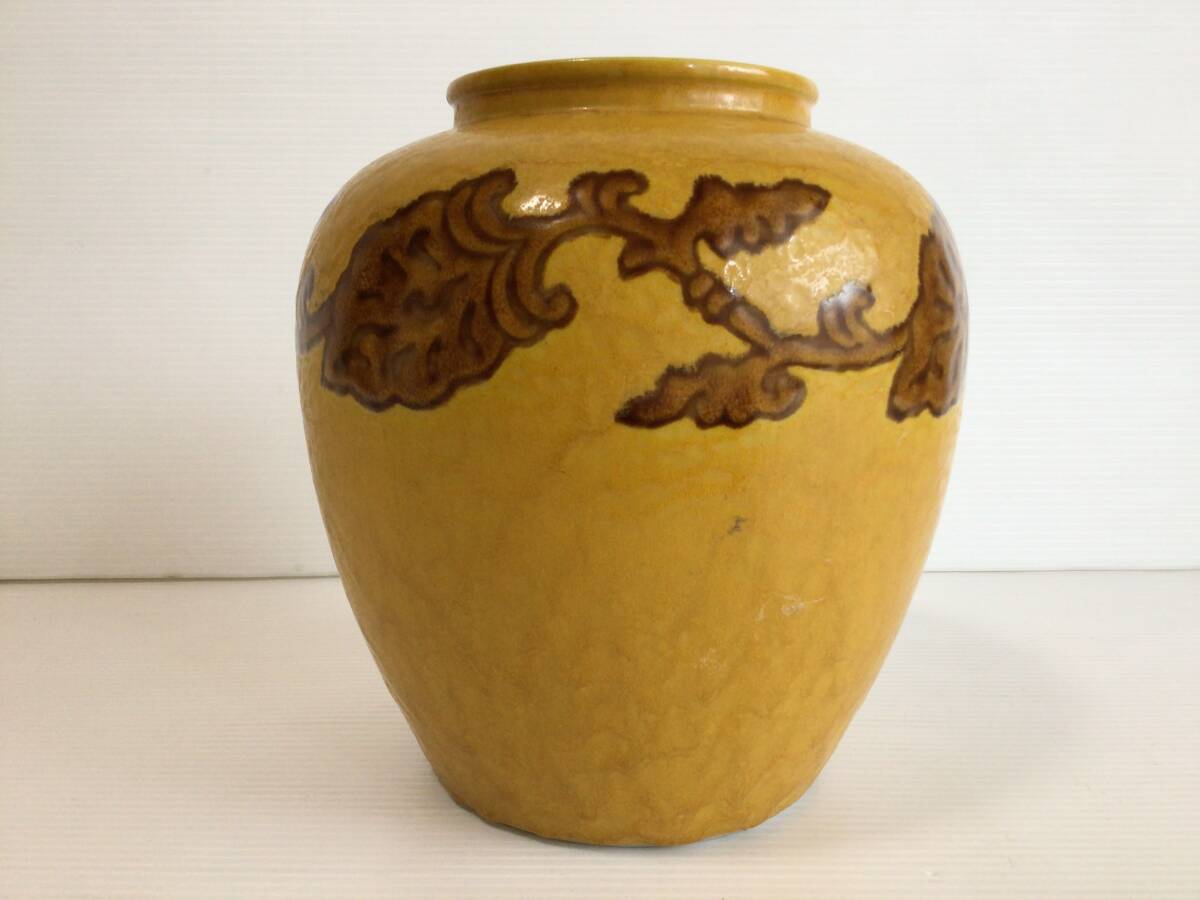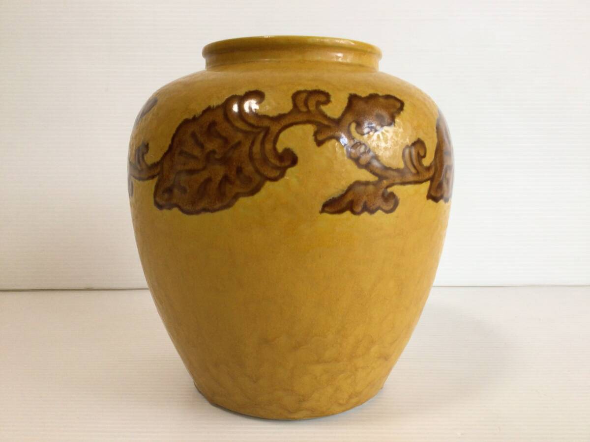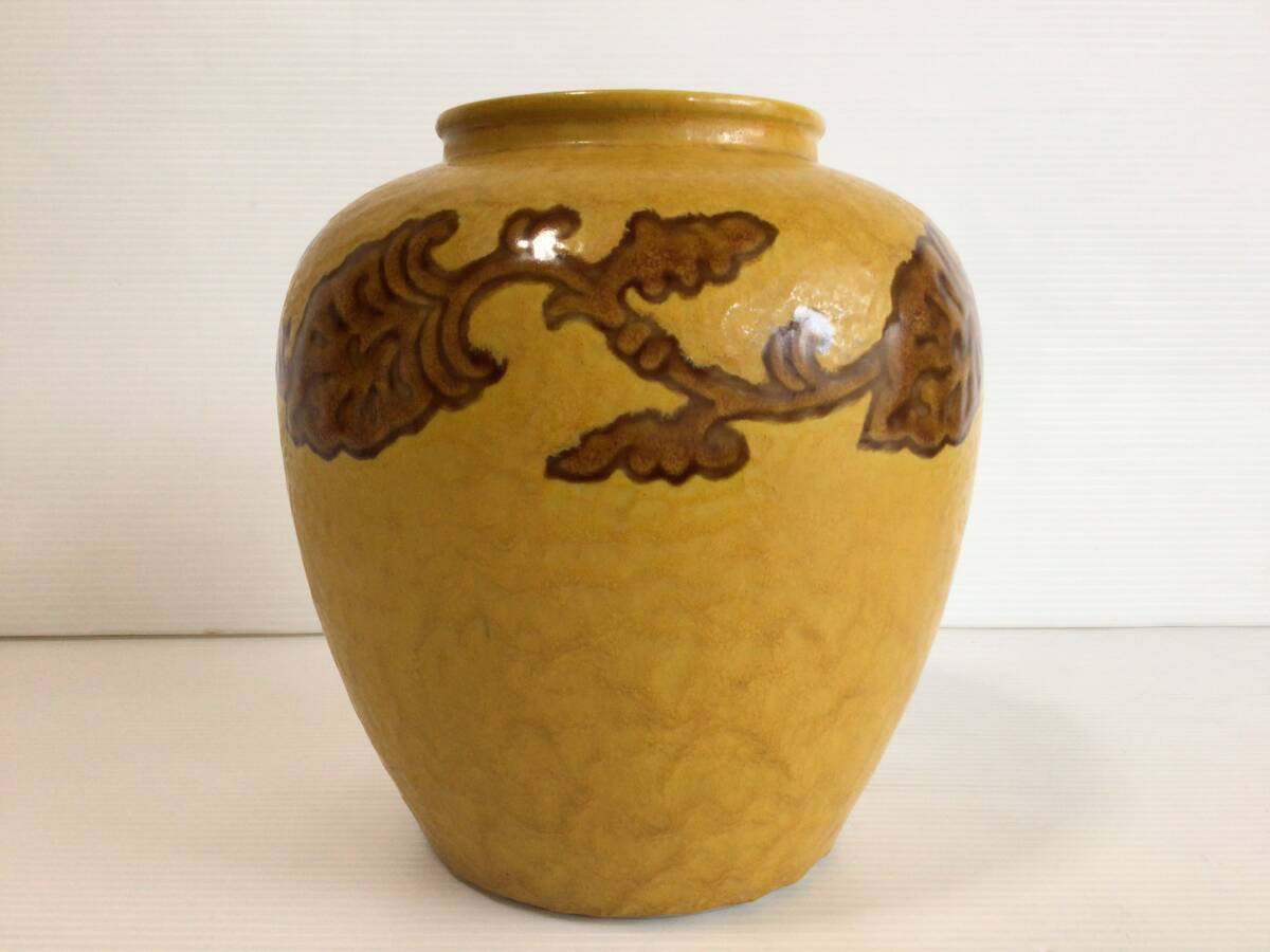 X235 送料無料 九谷焼 九谷八十吉 人間国宝 徳田八十吉 花瓶 壺 花器 フラワーベース 飾り壺 交路 黄交路 1点 コレクション 現状品