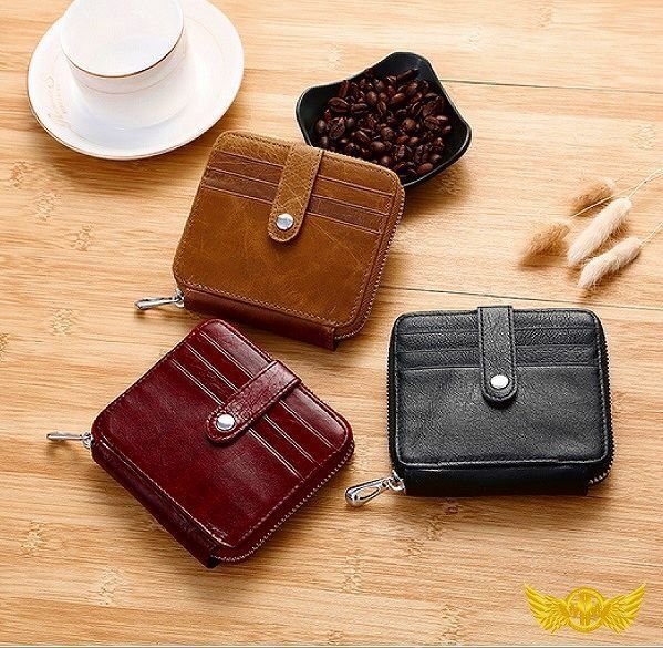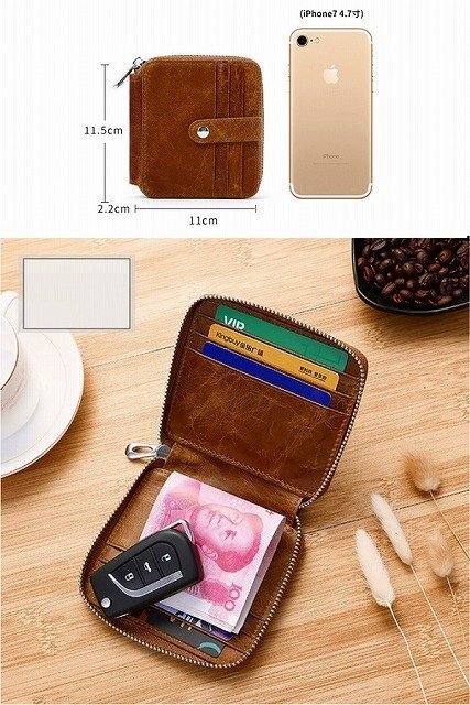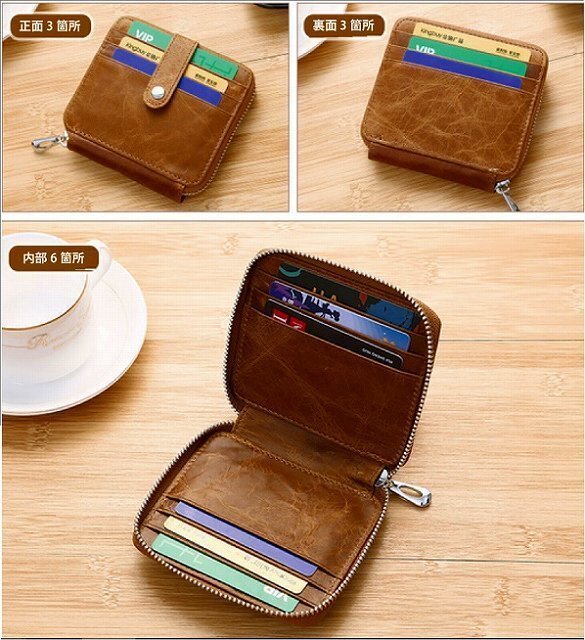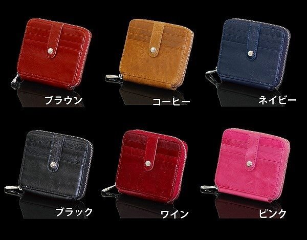 カードケース 12枚収納 小物入れ ラウンドファスナー レザー ブルー。