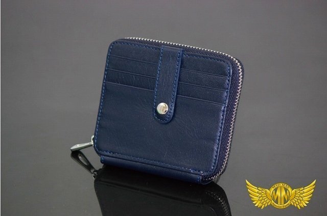 カードケース 12枚収納 小物入れ ラウンドファスナー レザー ブルー 【メール便送料210円】ファッション 小物 収納 贈り物に MADMAX