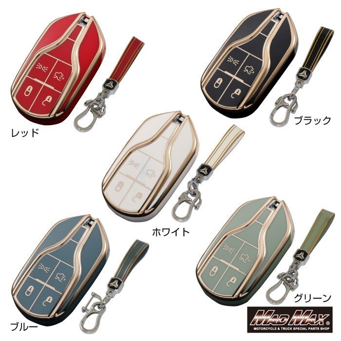 マセラティ専用 ゴールドライン TYPE B TPUソフト スマートキーケース ブルー。