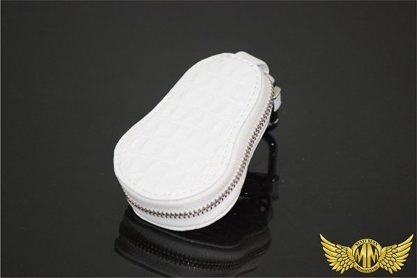 スマートキーケース クロコダイル型押し レザー カルビナ付き ホワイト。