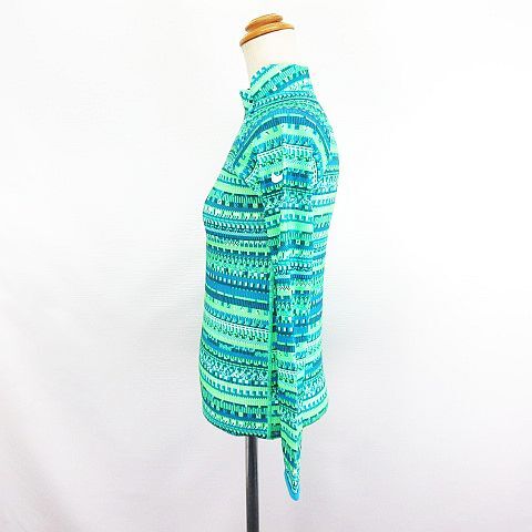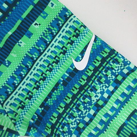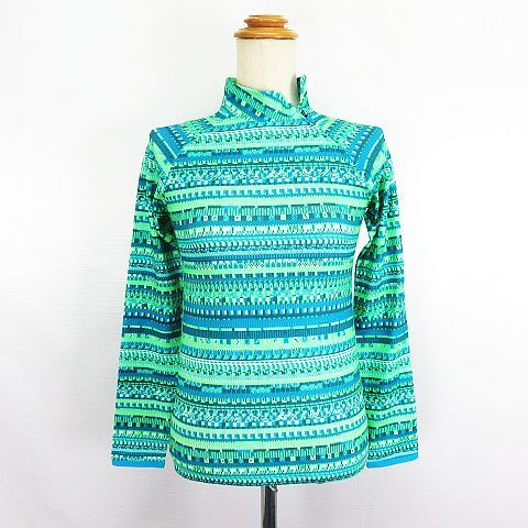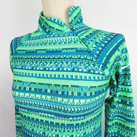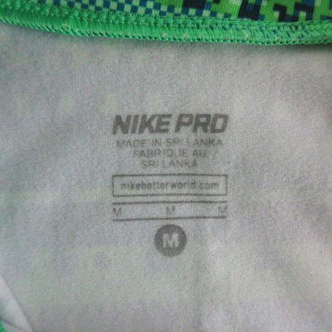 ナイキ NIKE PRO シャツ 長袖 ハイネック 総柄 ロゴ 指穴 ストレッチ M グリーン系 スポーツウェア ※EKM レディース