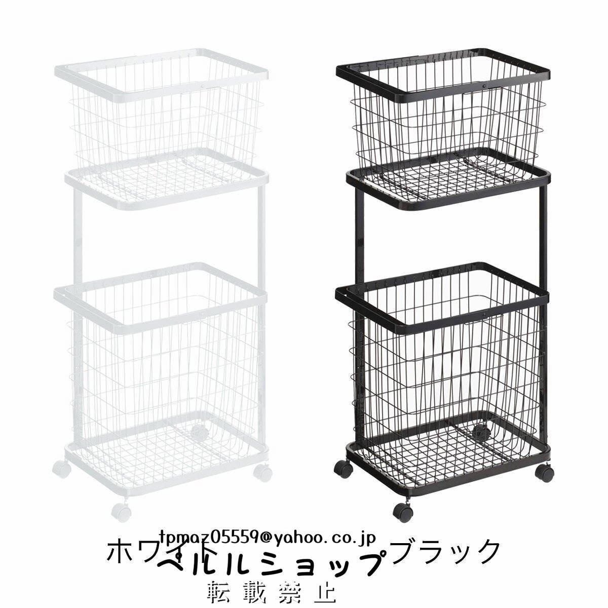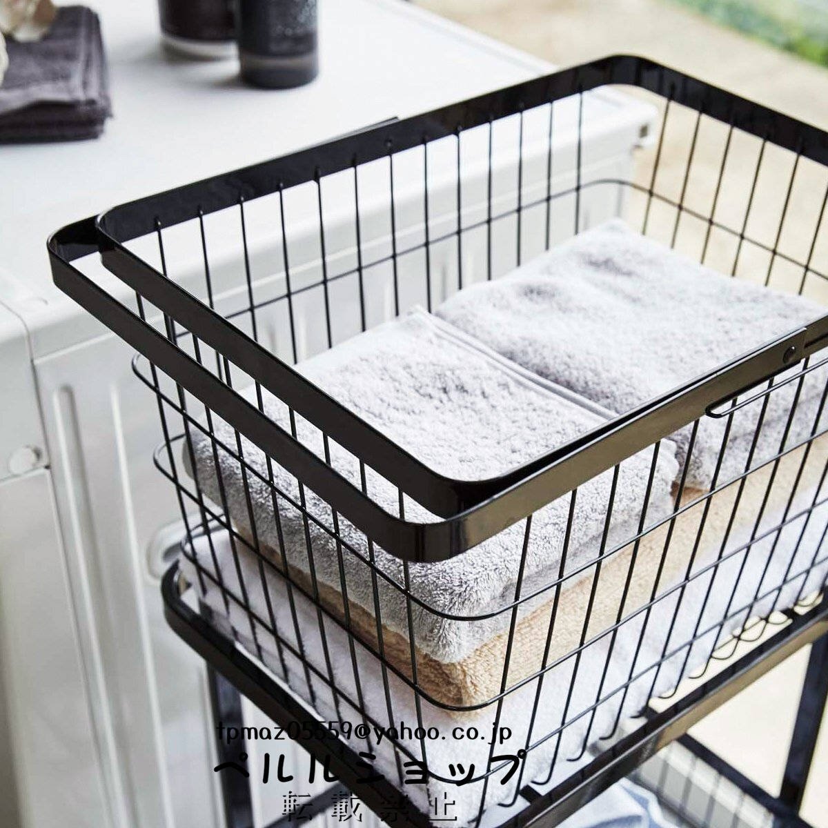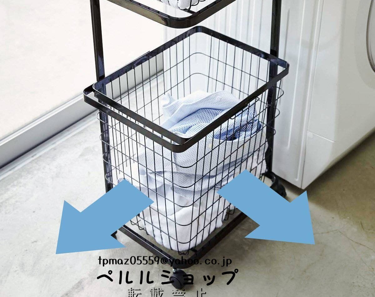 ランドリーバスケット 2段 ラック キャスター付き ランドリー収納 洗濯カゴ 収納 おしゃれ 脱衣かご お風呂(ブラック)