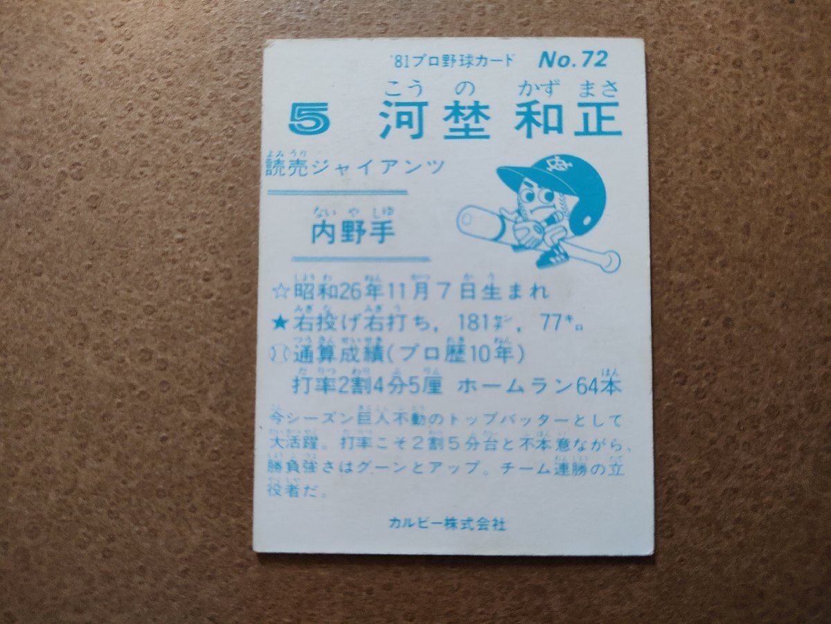 河埜和正 読売ジャイアンツ '81プロ野球カード カルビー