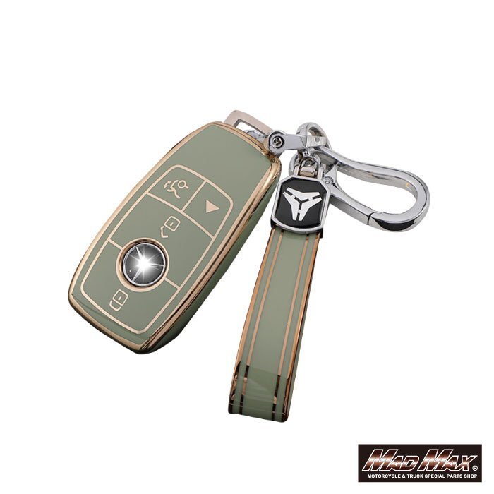 メルセデスベンツ専用 ゴールデンライン TYPE B 4ボタン式 TPUスマートキーケース グリーン。
