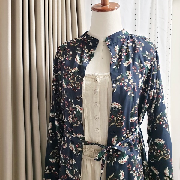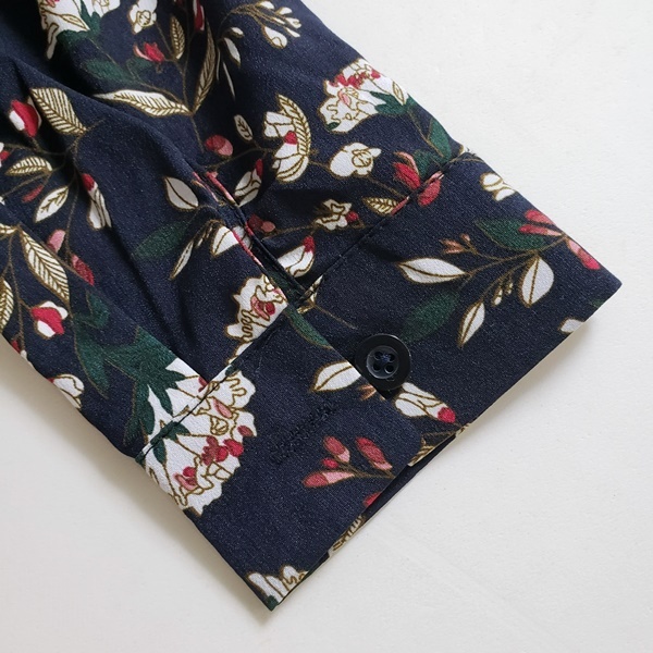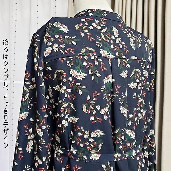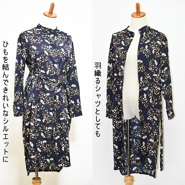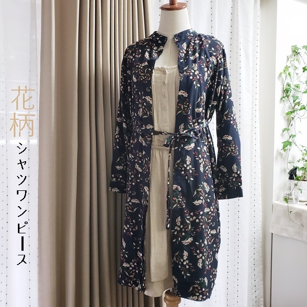 ワンピース 花柄 長袖 ロング丈 シャツワンピース ブラック 羽織る ロングシャツ 花柄シャツ テロン | |||