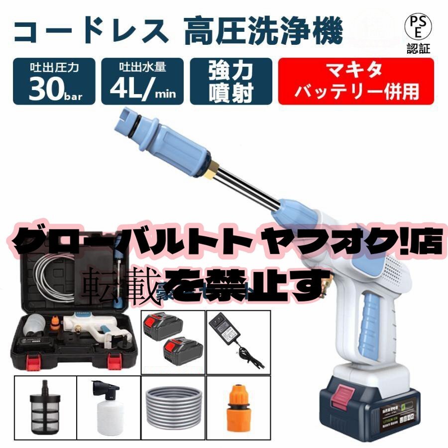 高圧洗浄機 コードレス 充電式 マキタ18Vバッテリー対応 バッテリー2枚き 強力 家庭用 洗車タオル 小型 電動工具 洗車 大掃除 自吸式
