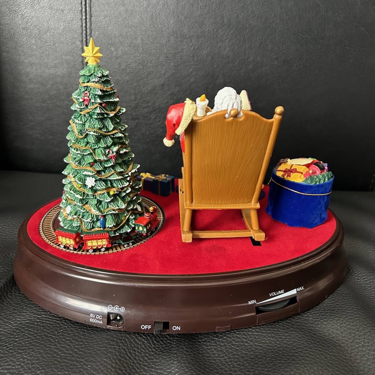 スイッチを入れると、クリスマスツリーが点灯し、電車が回転、そしてオルゴールが流れます。