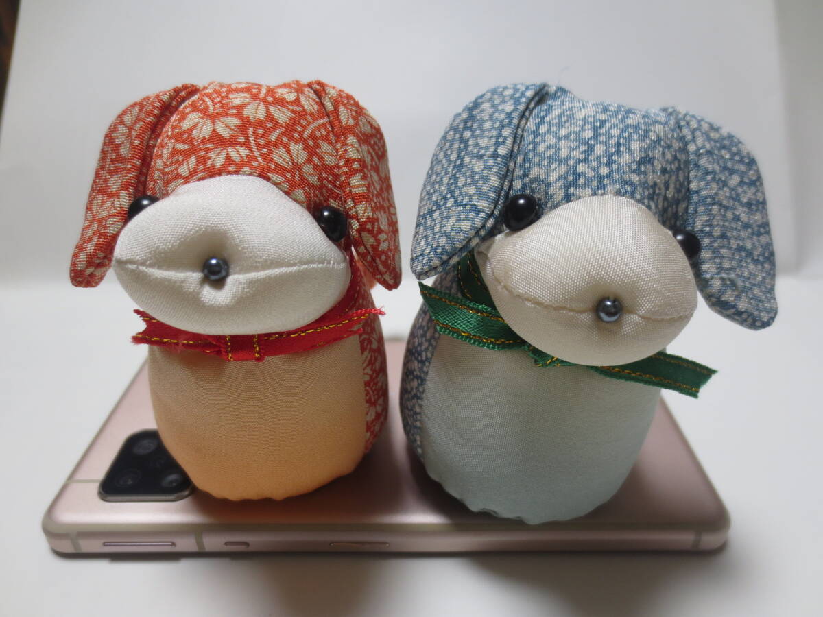 ワンちゃん イヌ ぬいぐるみ おすましワンちゃん 子犬 着物リメイク ハンドメイドドール 手作り人形