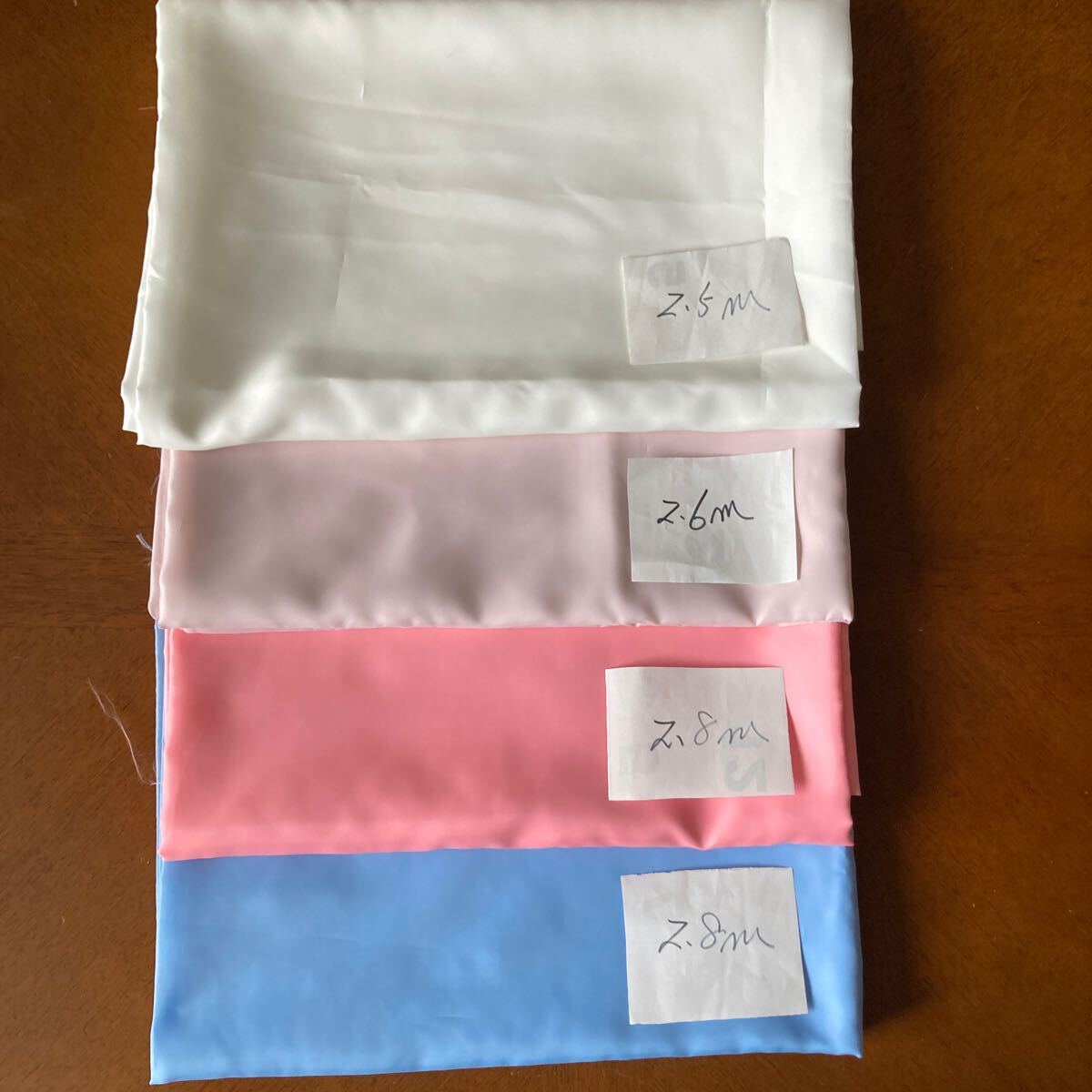 白,淡いピンク,濃いピンク,ブルーの4色になります。