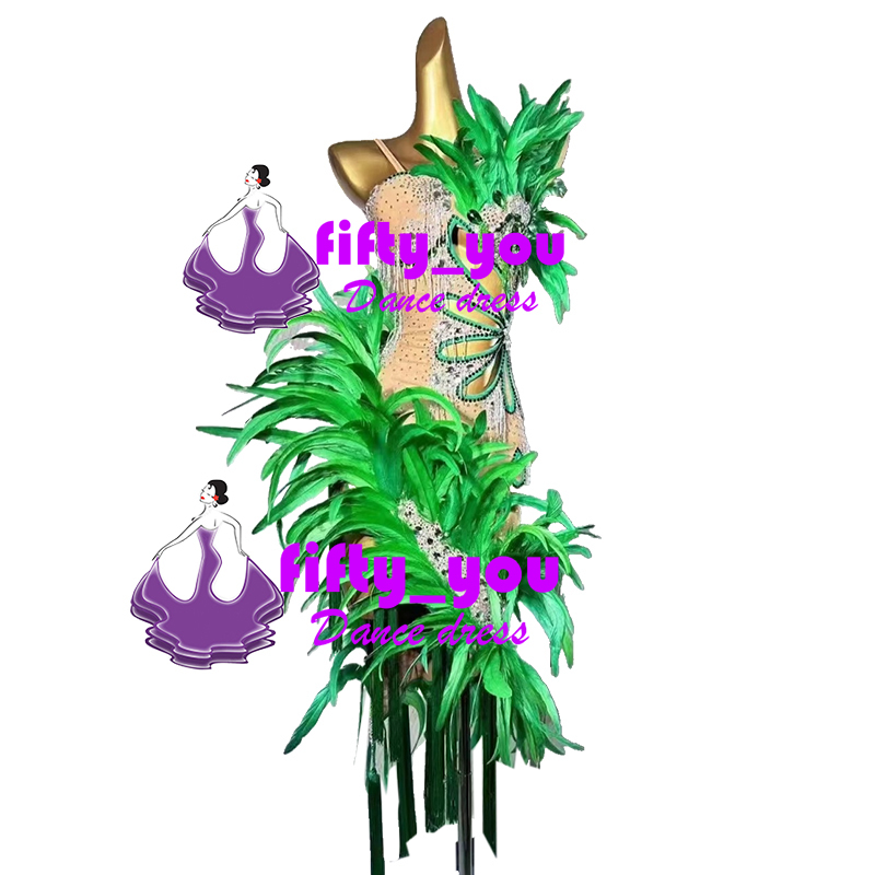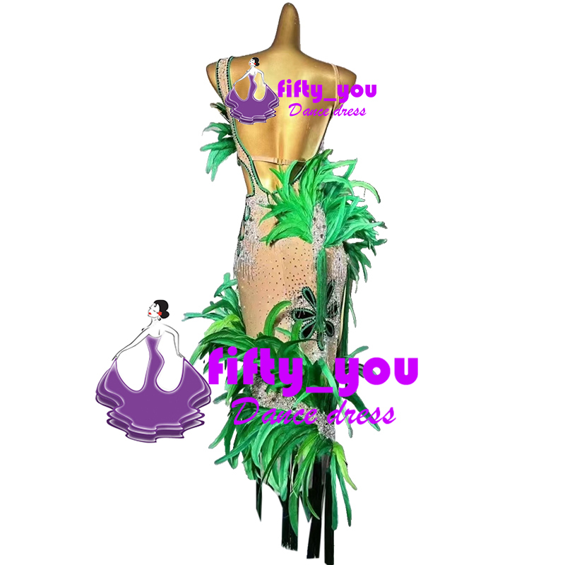 新品fifty_you 新作 レディース社交ダンス衣装 競技パーティー用高級ドレス サイズオーダー ラテンドレス 羽飾り ベージュ系