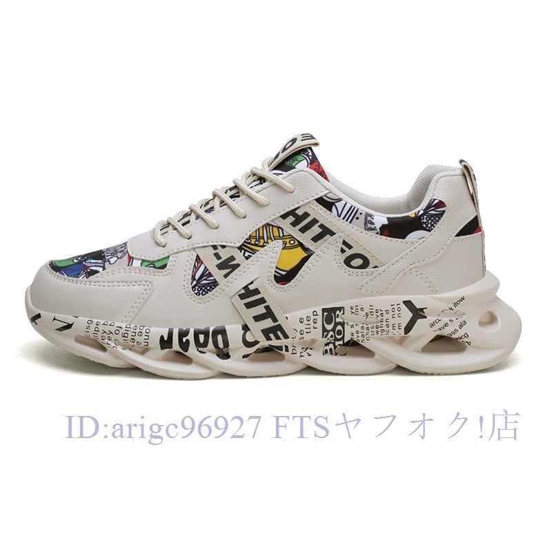 B1608☆新品スニーカー カジュアルシューズ ウォーキングシューズメンズ スポーツシューズ バスケ靴 おしゃれ25~27cm選択可 ベージュ