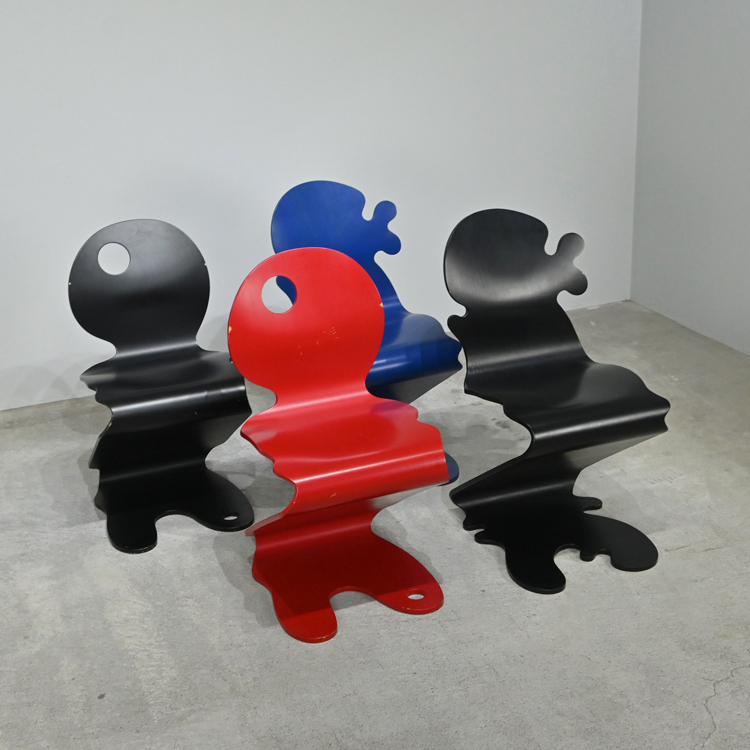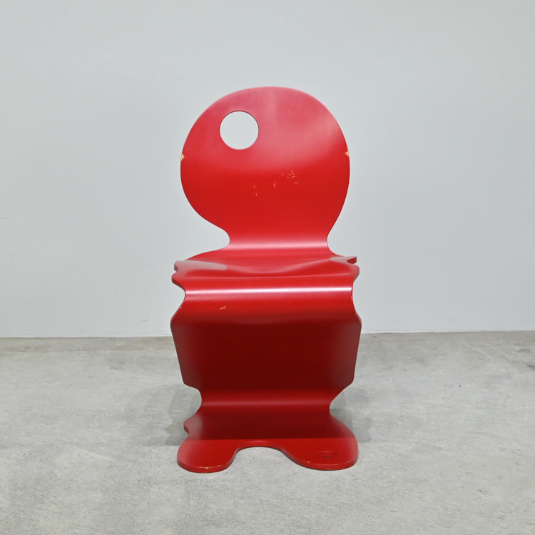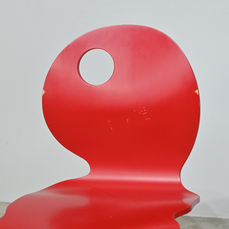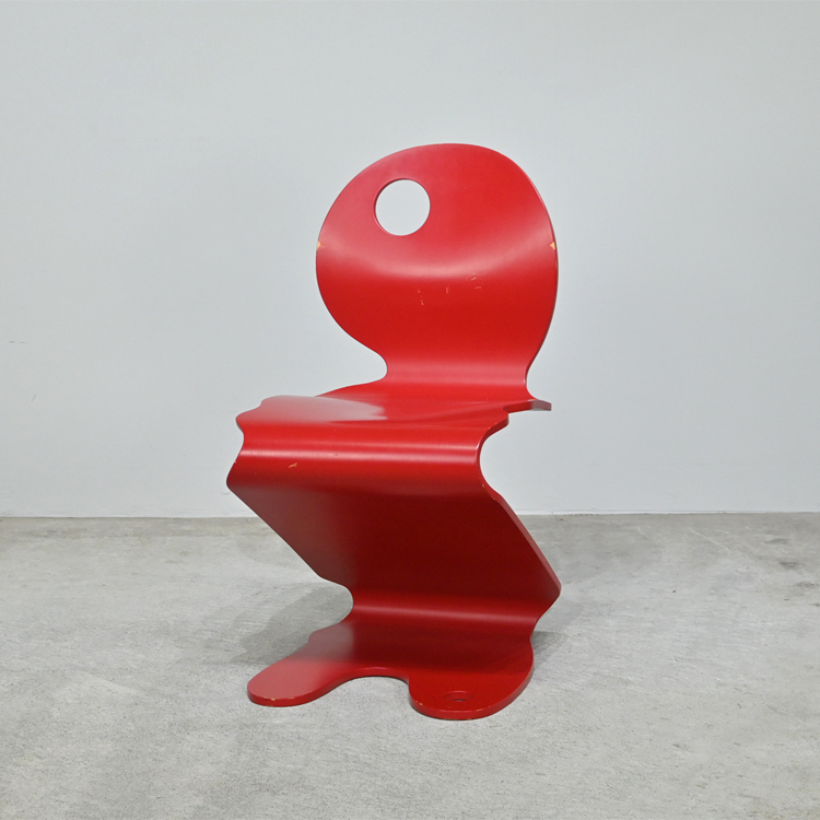 穴の開けられた背もたれと脚に、不規則な曲線が印象的なデザイン。