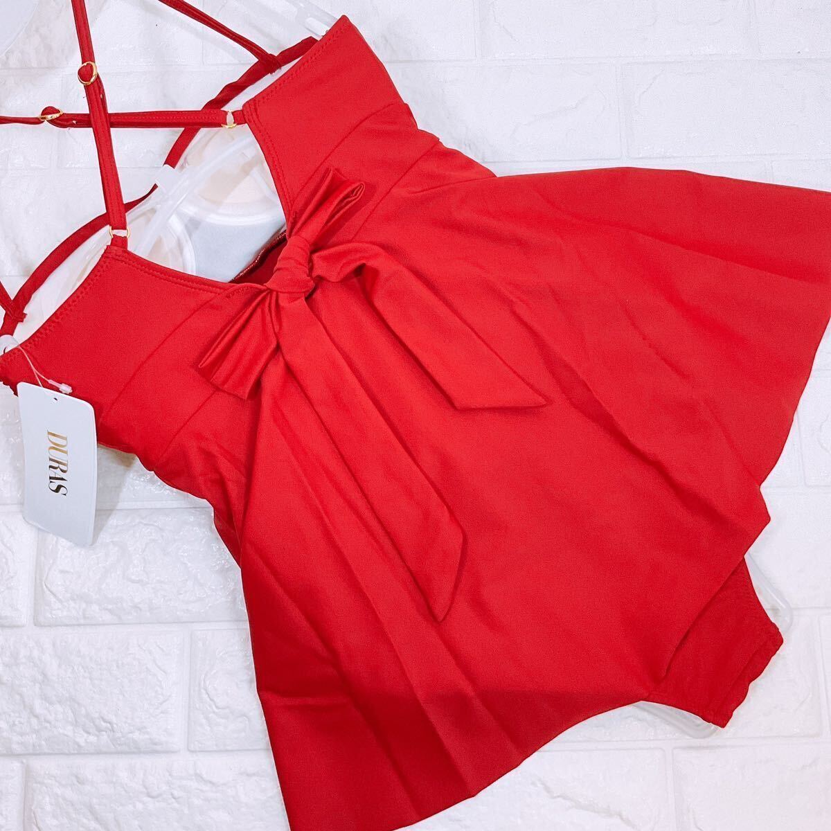 ワイヤー入りで着用感安定のワンピースは、ヒップをしっかりと隠す丈感。