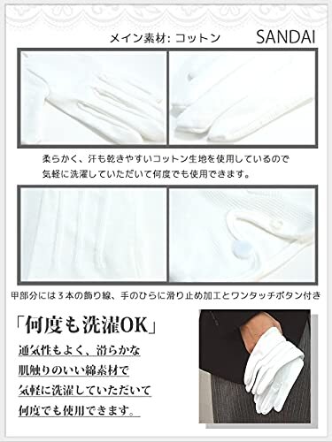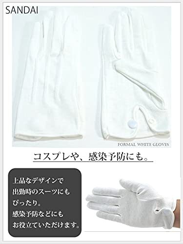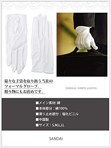 「[SANDAI] ハイブレス ホワイト 綿 追加 メンズ 滑り止め フォーマル 白手袋 S M L コットン グローブ 1双 3双 セット から」▼4571495450947▼(商品説明)フルフィンガー・ホワイト(5双) M ・・Size:MColor:ホワイト(5双)・2023.12.28 ブラック追加 本体部分:綿100% 滑り止め部分:塩化ビニル・本体部分:綿100% 滑り止め部分:塩化ビニル・サイズ:S M L LL カラー:オフ白・寸法】【 S 】 全長21cm 中指長さ8cm 甲部分幅8cm 裾幅8cm 【 M 】 全長22.5cm 中指長さ8.5cm 甲部分幅8.3cm 裾幅8.3cm 【 L 】 全長23.5cm 中指長さ9cm 甲部分幅9cm 裾幅9cm 【 LL 】 全長24cm 中指長さ9.3cm 甲部分幅9.5cm 裾幅9.5cm 【 3L 】 全長25.5cm 中指長さ9.5cm 甲部分幅10cm 裾幅10cm・生産国:中国2023.12.28 ブラック追加 本体部分:綿100% 滑り止め部分:塩化ビニル